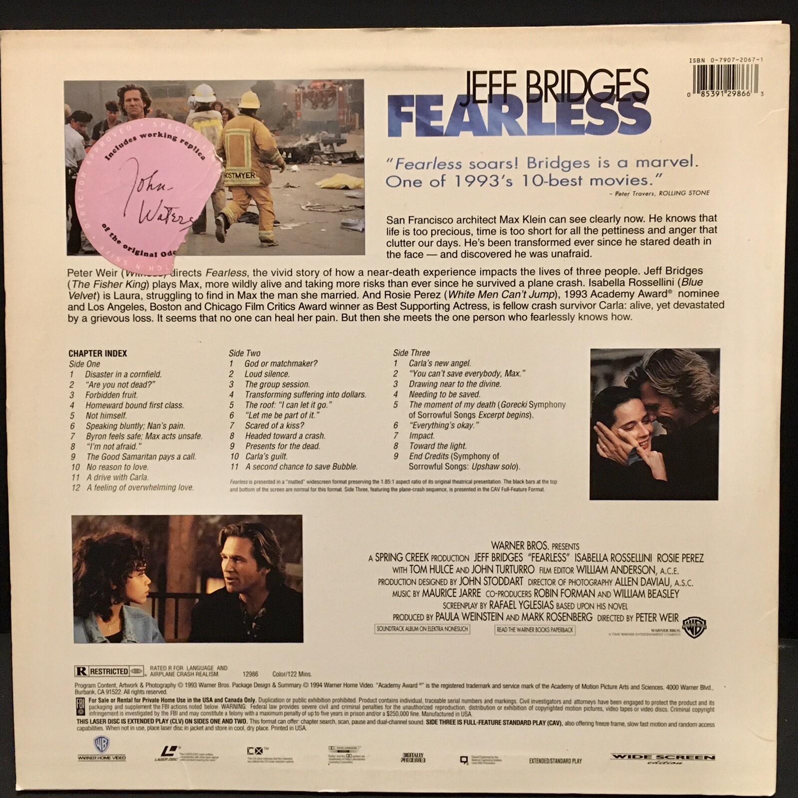 FEARLESS Widescreen Laserdisc Jeff Bridges, Isabella Rossellini, Rosie Perez - R