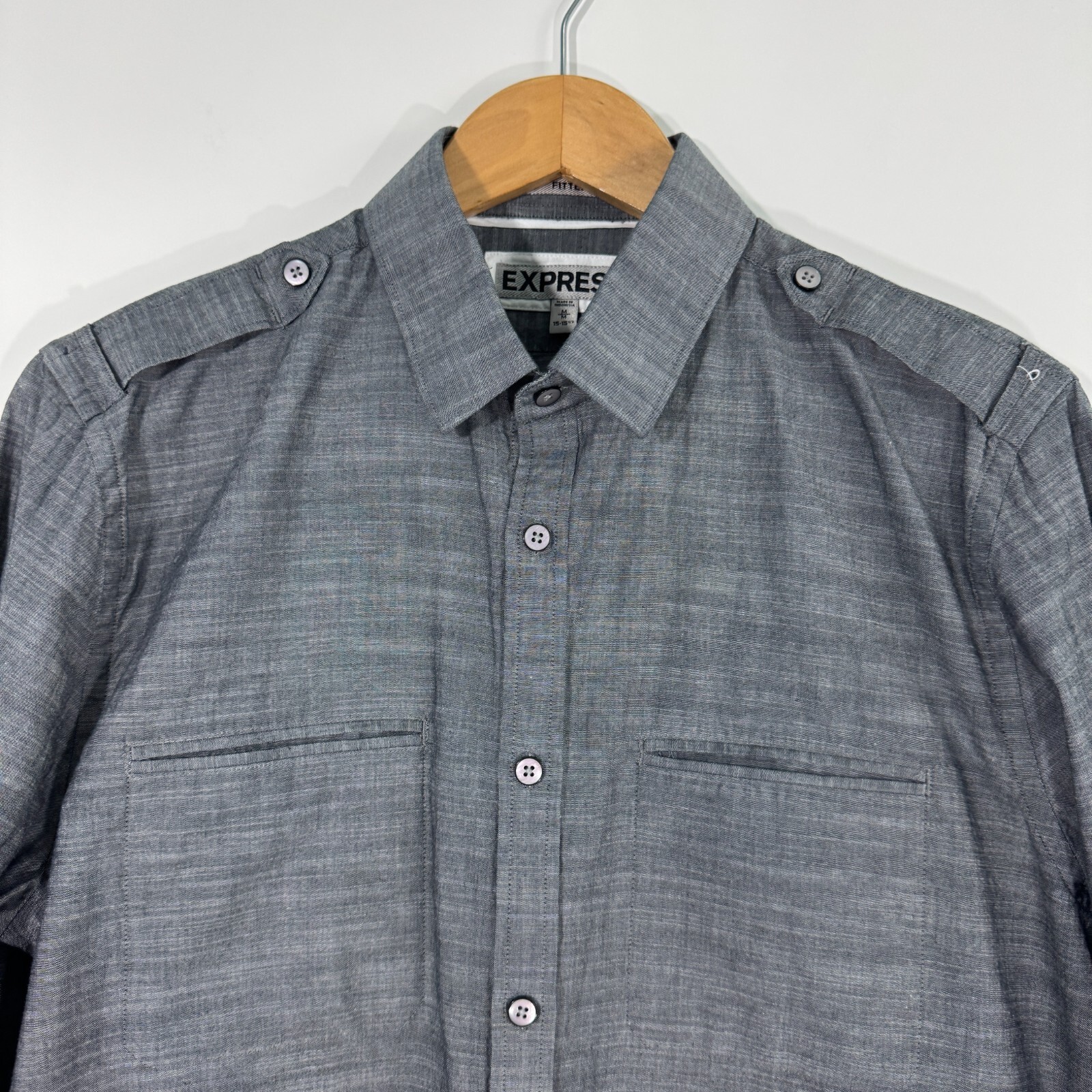 Express Men s Size Medium 15-15.5 Gray Heather Button Up Casual Dress Shirt