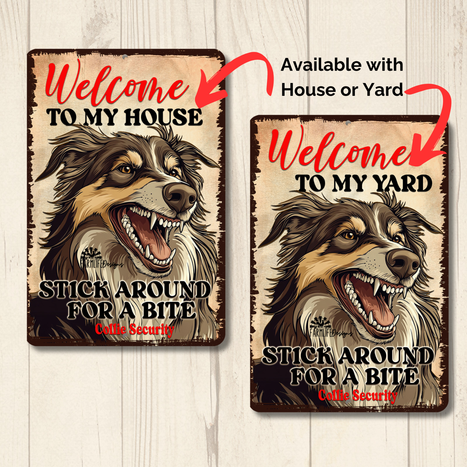Collie Welcome Yard House Sign funny warning dog security metal tin outdoor