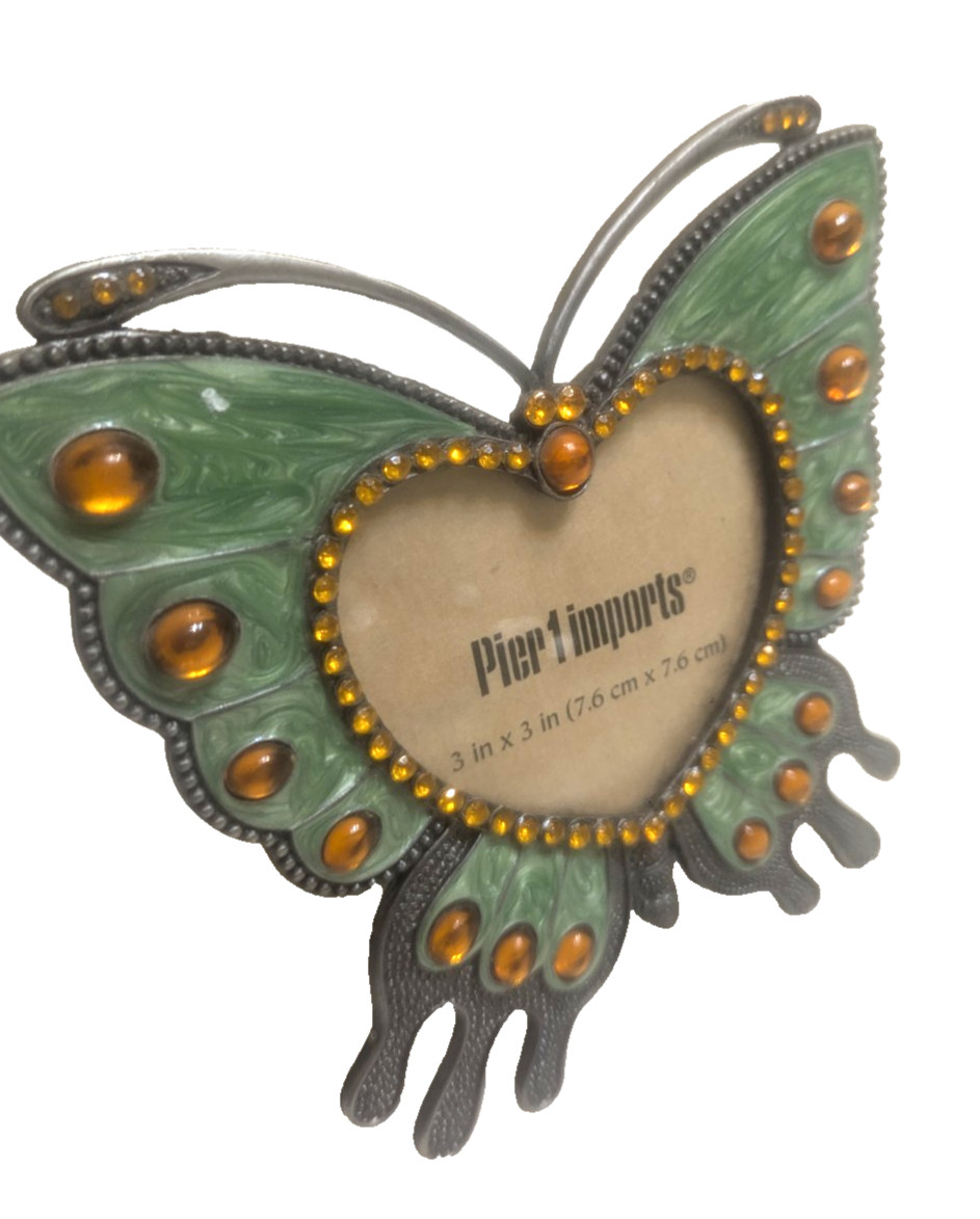• Pier1 Imports Butterfly Frame Metal Enamel Family Photo Rhinestones Heavy 3x3