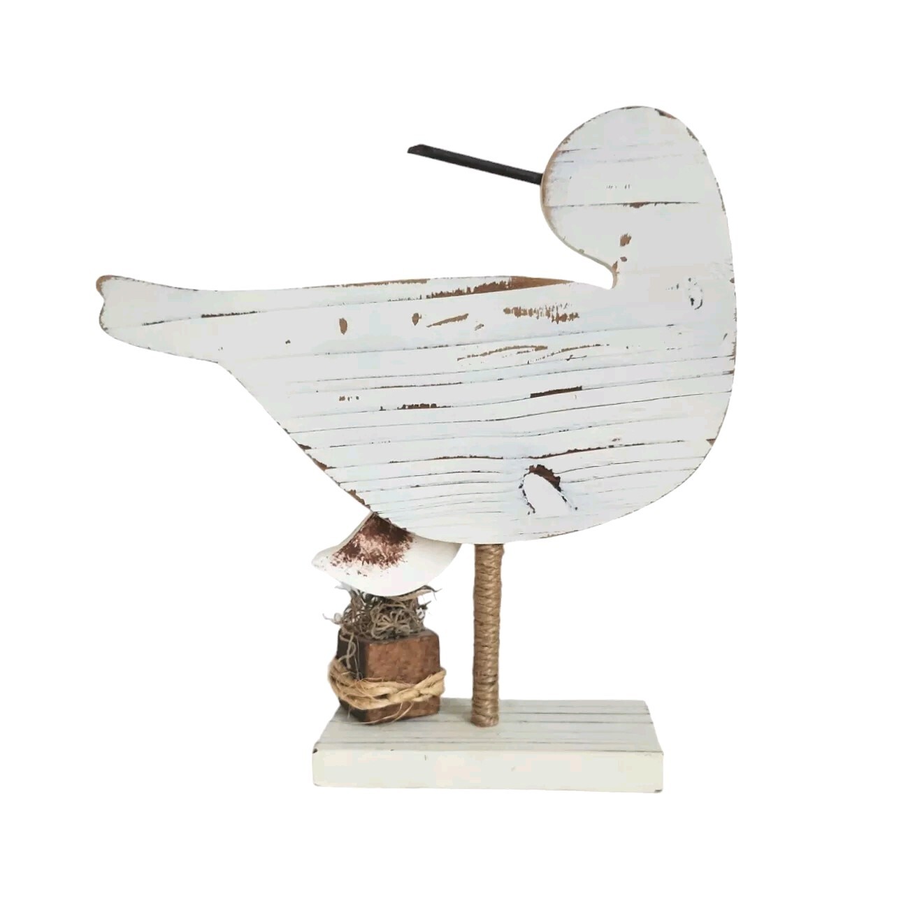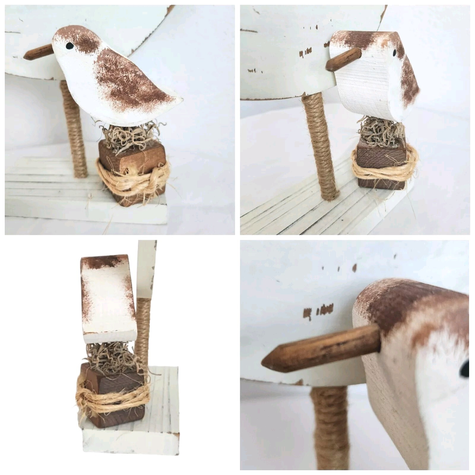 Rustic Wooden Bird Sculpture Hand Painted Distressed Carved Wood Folk Art 10.75