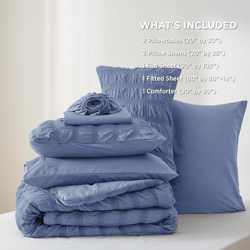 Bed in a Bag Queen - 7 Pieces Plaid Seersucker Bedding Comforter Sets, Soft