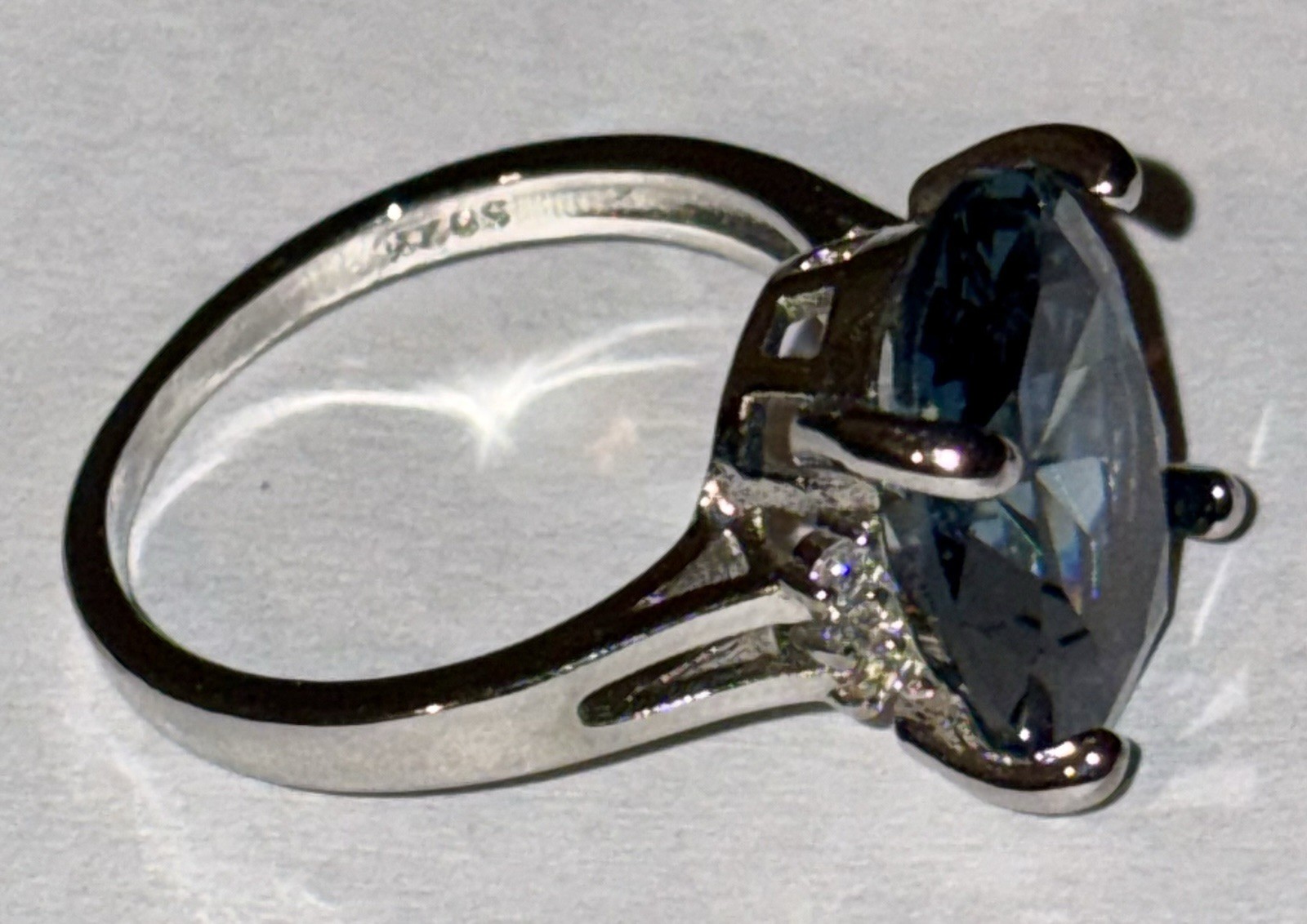 как выглядит Large London Blue Topaz and White Topaz Ring set in Sterling Silver фото