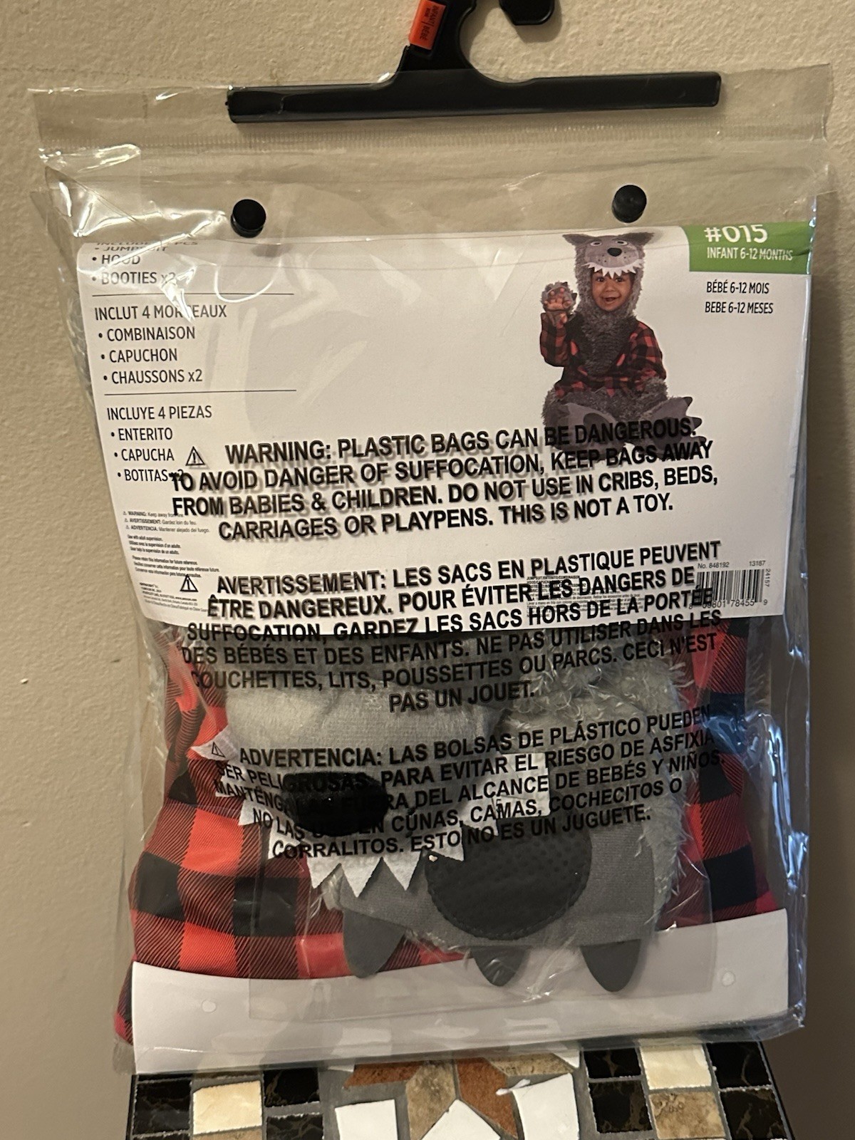 Infant Halloween Costume 6-12 Month Wolf Soft Cuddly 4 Pieces Party Boy Girl