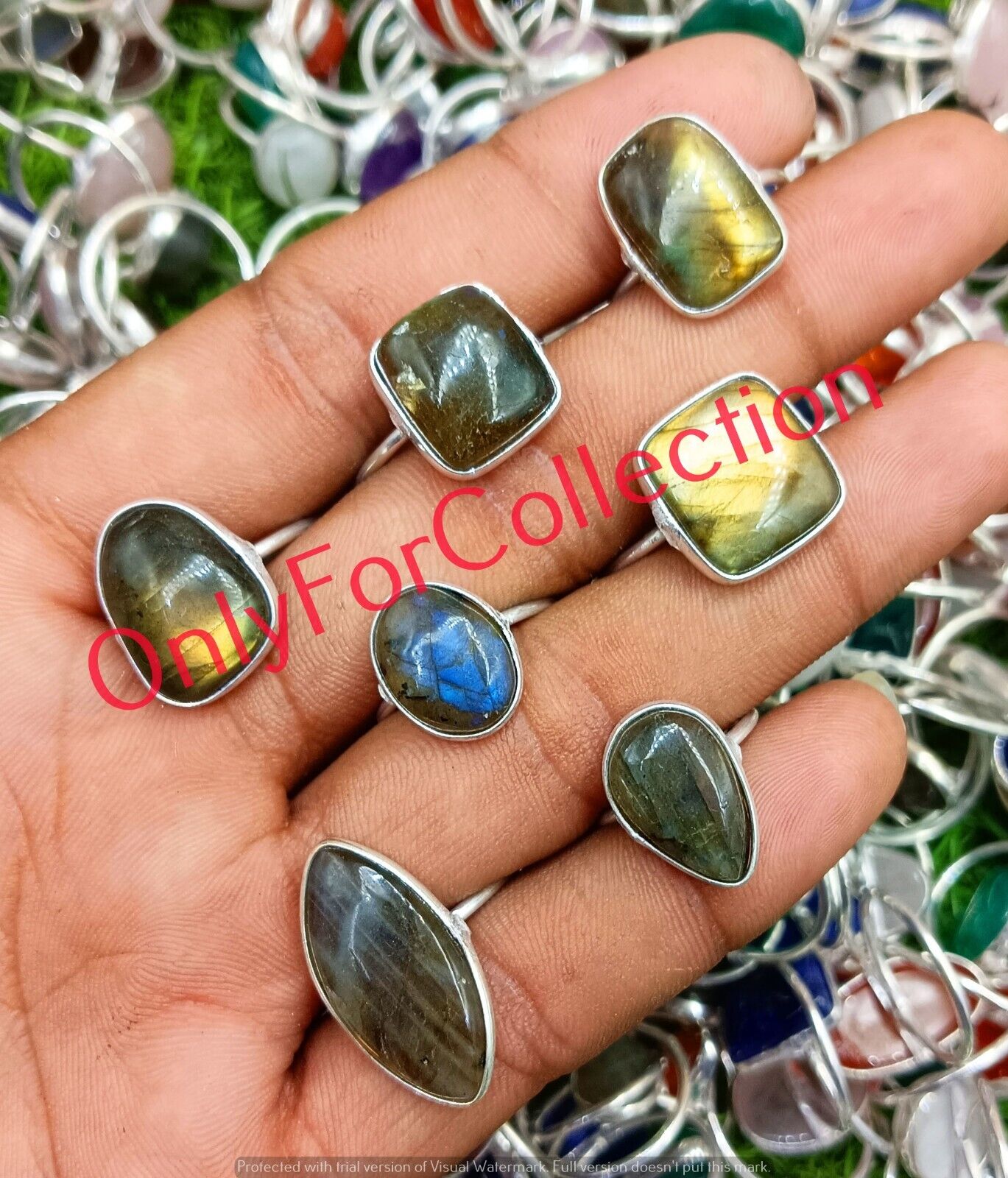 Natural Labradorite Gemstone 925 Sterling Silver Plated Wholesale Ring Lot 10pcs