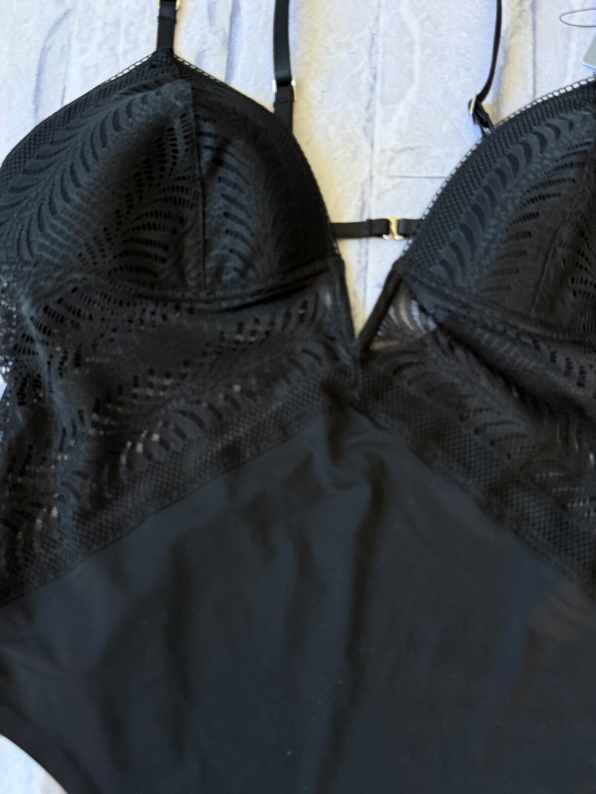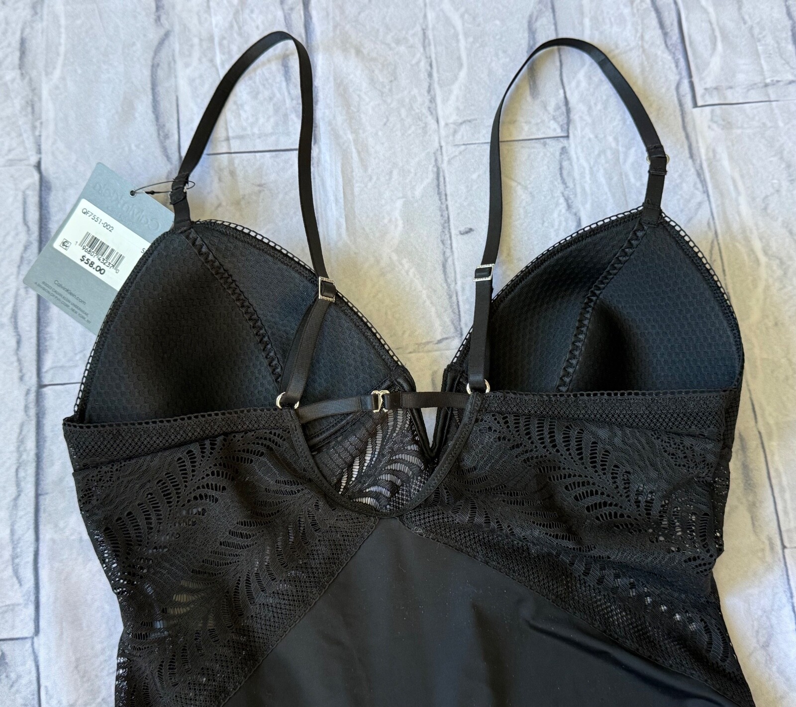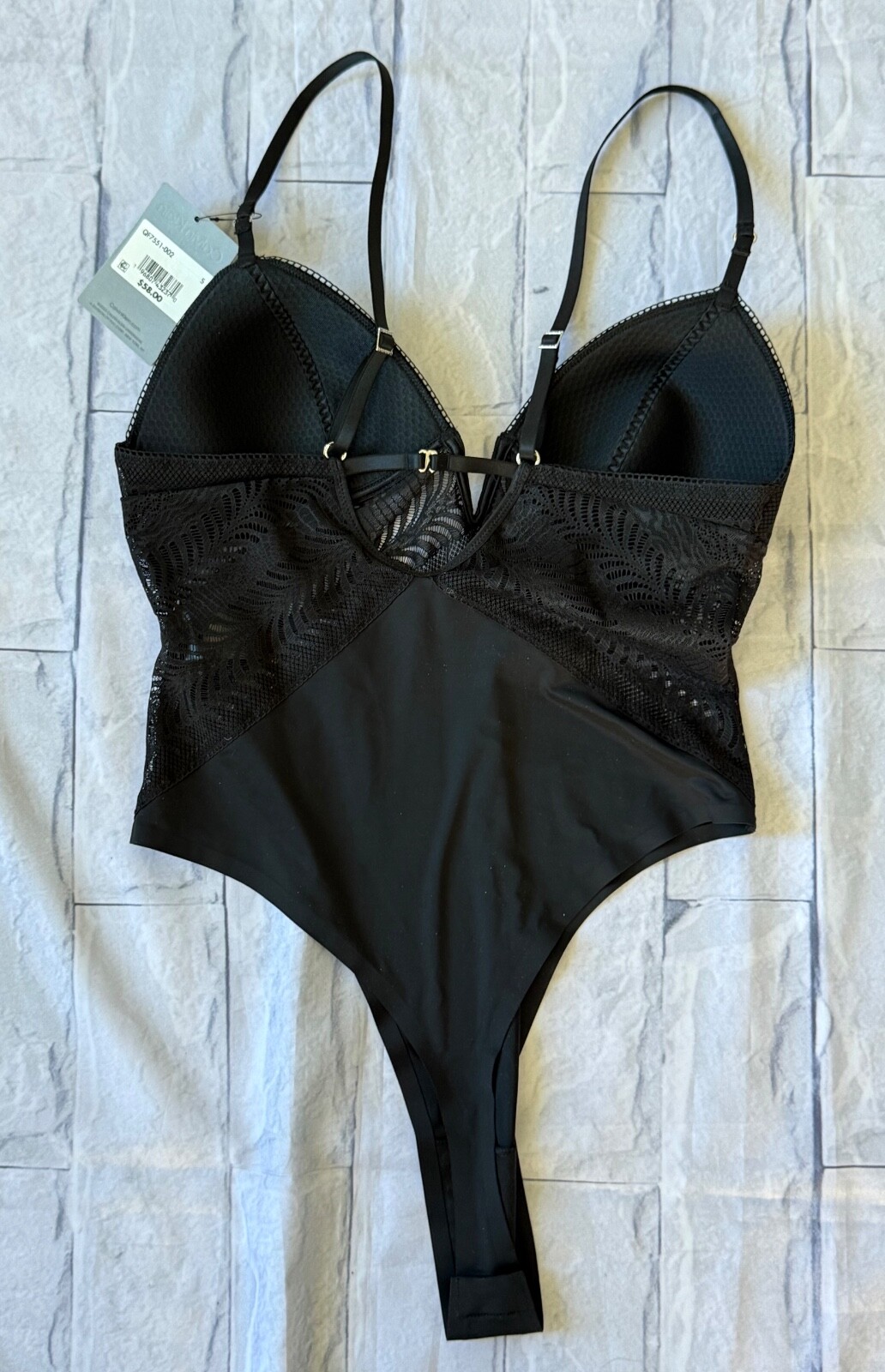 как выглядит Calvin Klein Lace Solid Womens Thong Bodysuit NWT Black Size Small фото