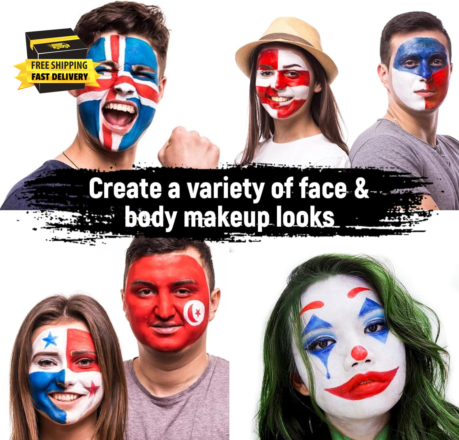 Red White Blue Face Paint - 3 Colors 12G USA American Flag Patriotic Stripe Fan