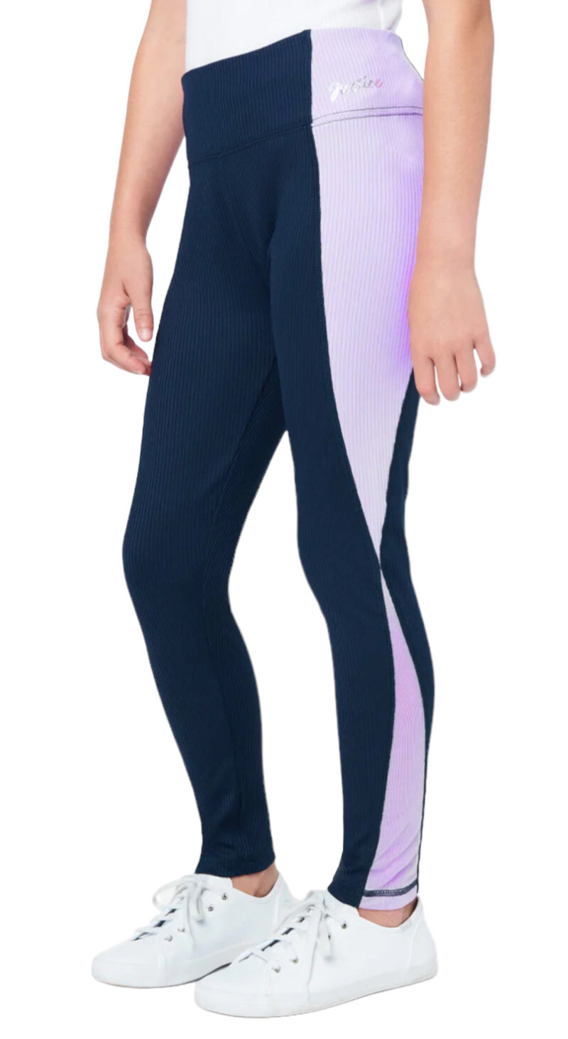 как выглядит Justice Girls Leggings Blue/Purple 10 Colorblock Ankle Length Tech Pocket Logo фото