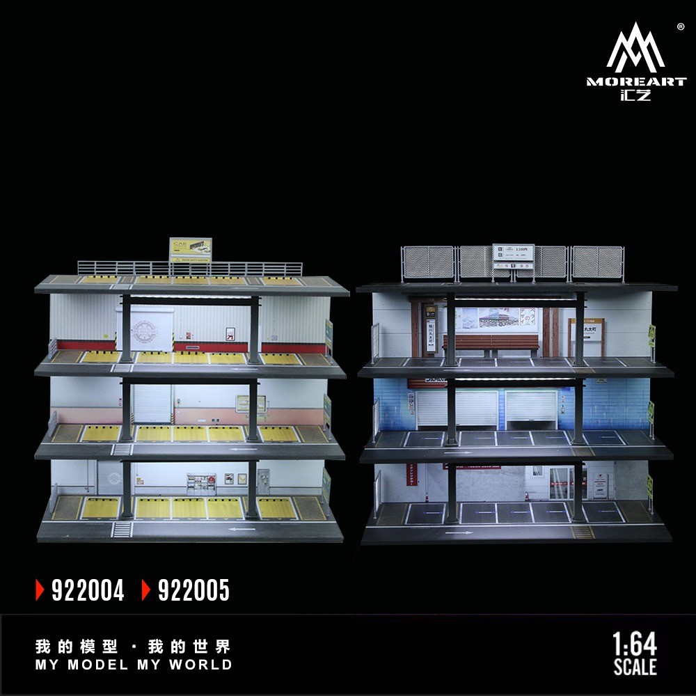 1/64 Diorama Diecast Garage Model LED 4-Story Parking Lot Scene Display Case US