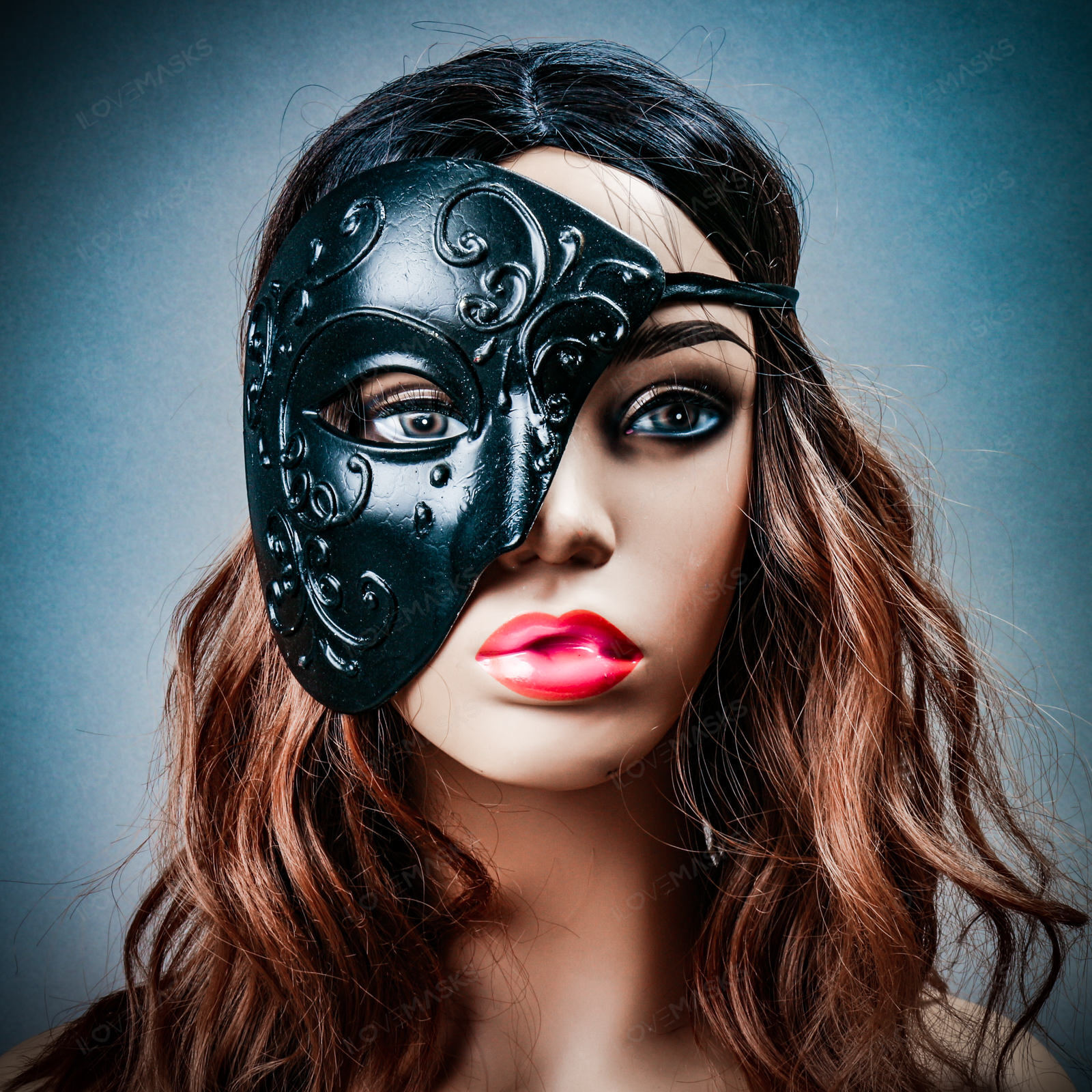Phantom of Opera Venetian Design Masquerade Ball Party Half Face Mask Black