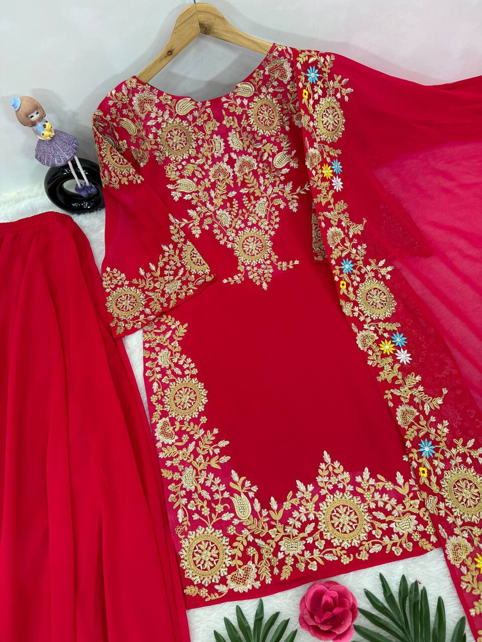 как выглядит LATEST DESIGNER FAUX GEORGETTE PALAZZO SUIT WITH DUPATTA FOR WOMEN GIRLS фото