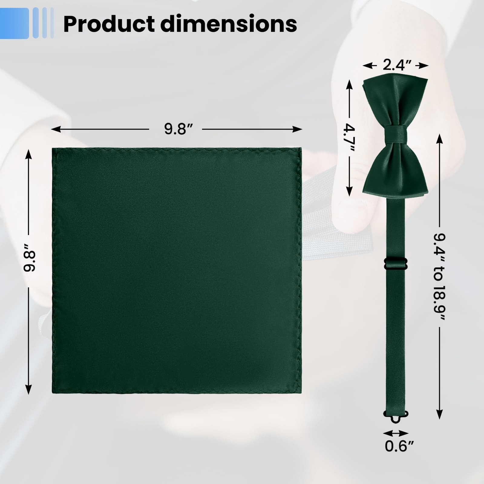 Men's Green Bow Tie Set Solid Color Pre-tied Bow Tie and Pocket Square Cuffli...