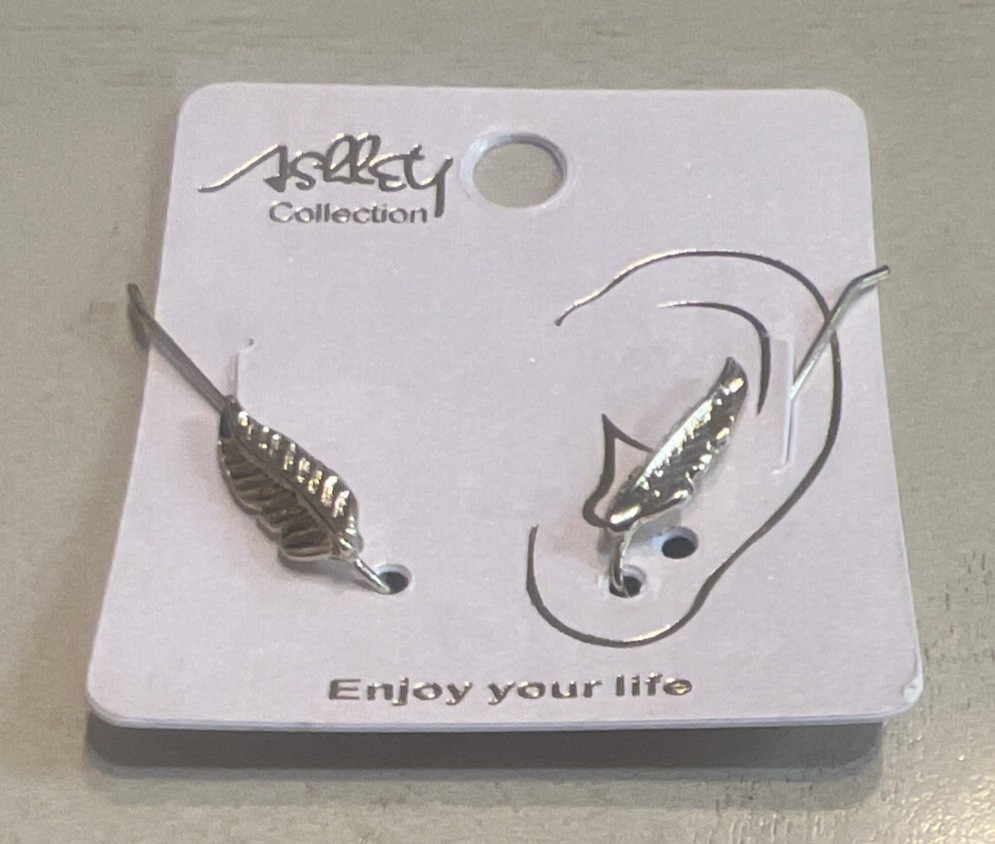 Metal Feather Pierced Earrings Gold tone we Have 2 Colors Available Gold Or Silv
