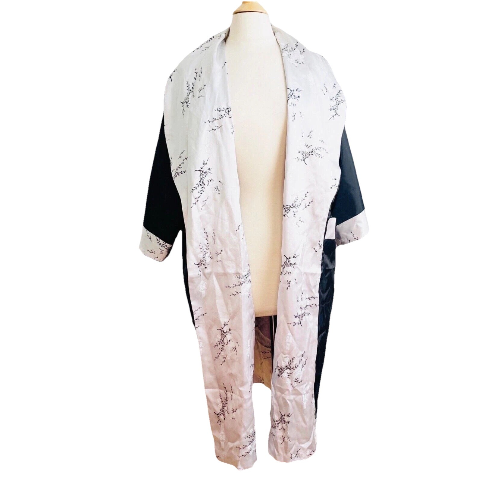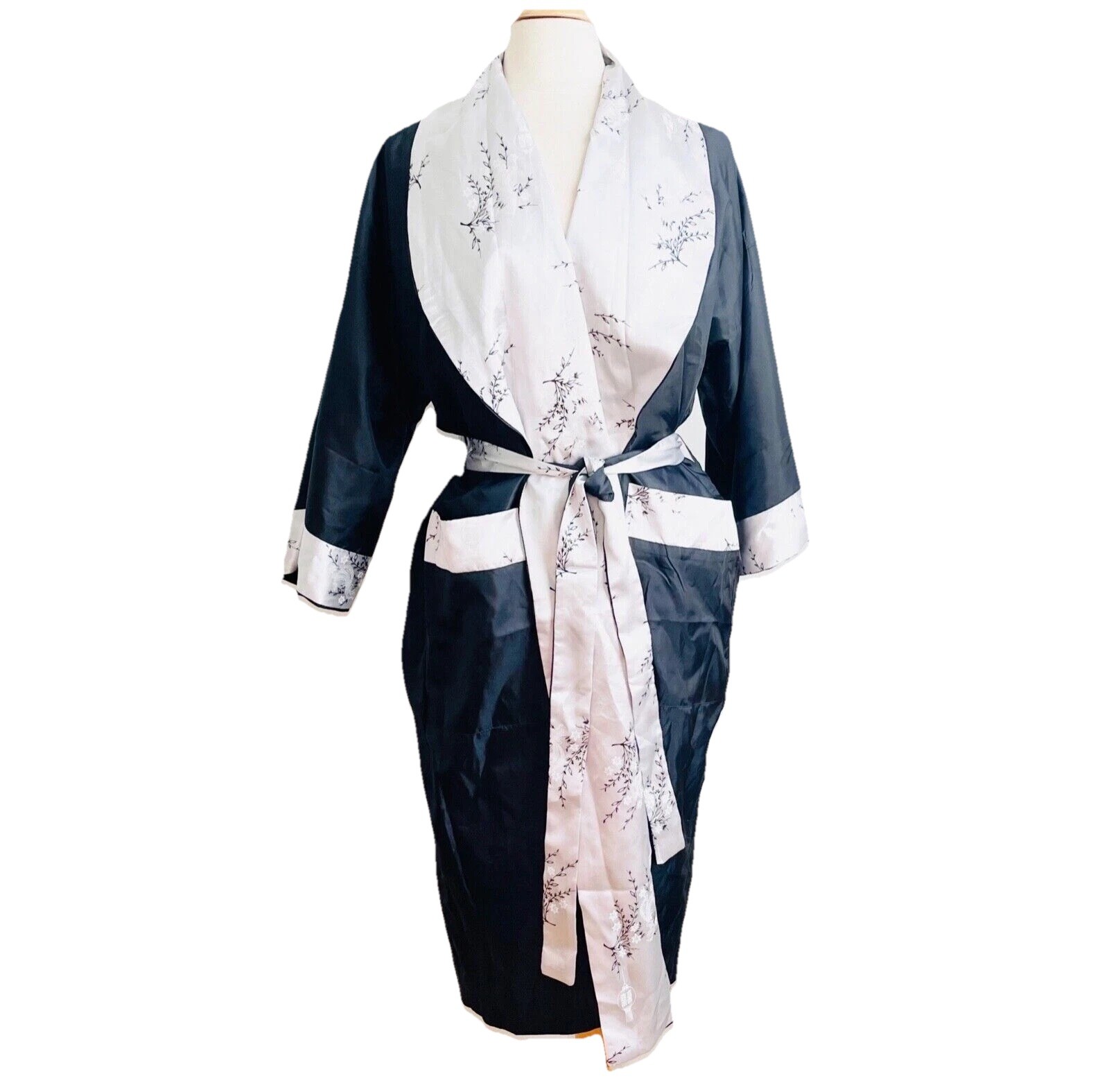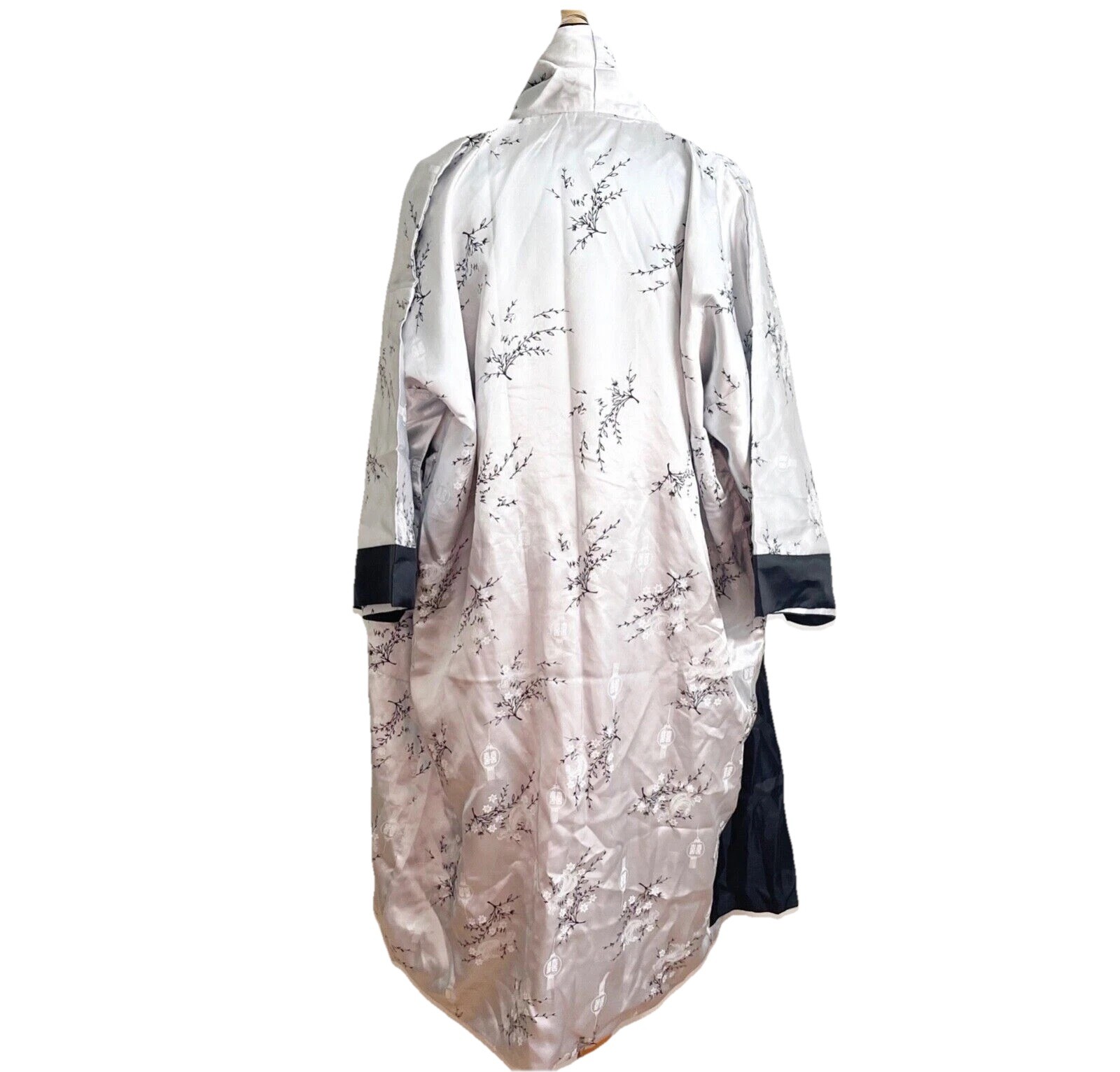 как выглядит Unisex Men Kimono Reversible Embroidered Dragon Robe Asian Japanese Black Gray L фото