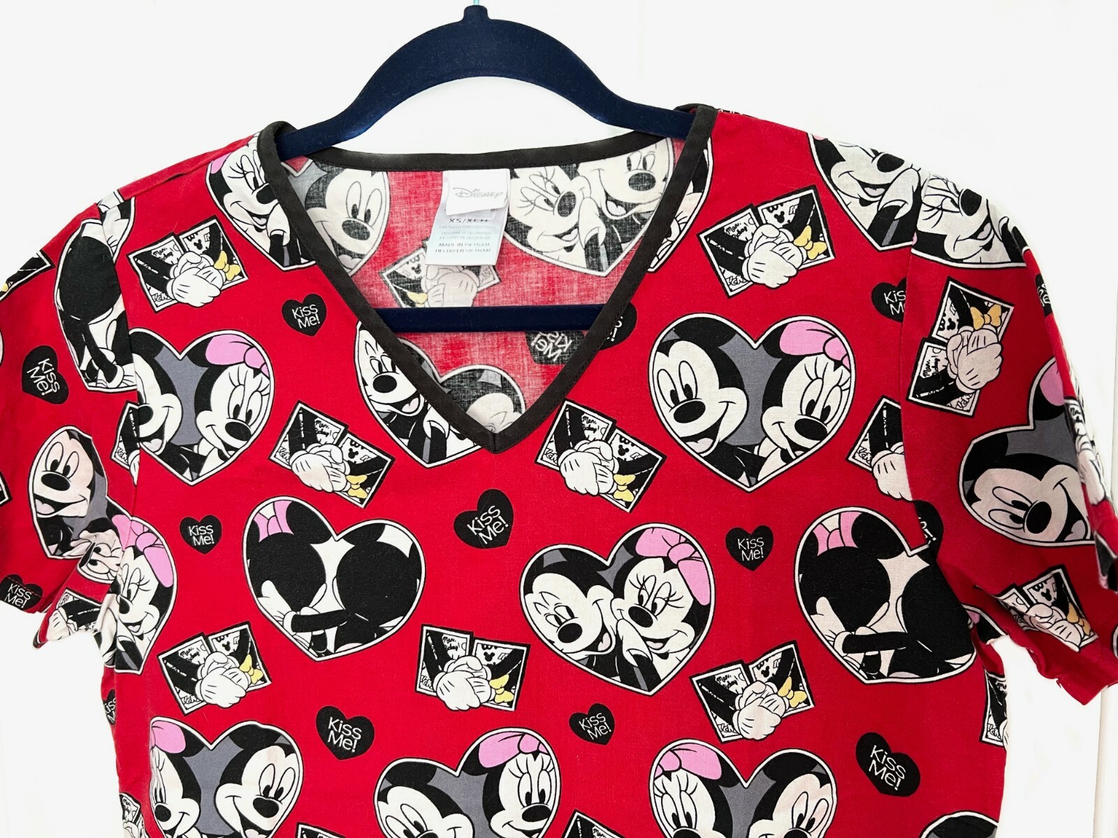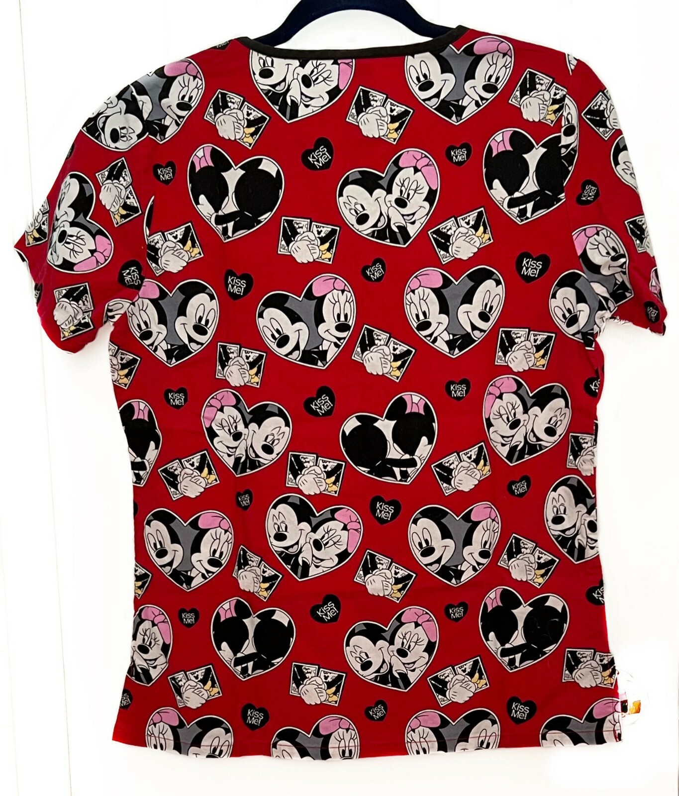 Disney Mickey Mouse Minnie Hearts Womens Red Medical Scrub Uniform Top XS