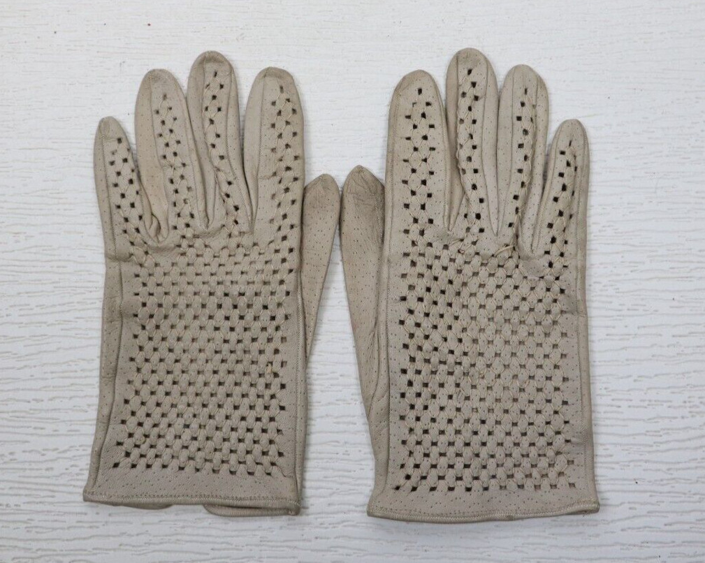 как выглядит VINTAGE WOMENS BEIGE TAUPE BROWN LEATHER GLOVES - CUT-OUTS фото