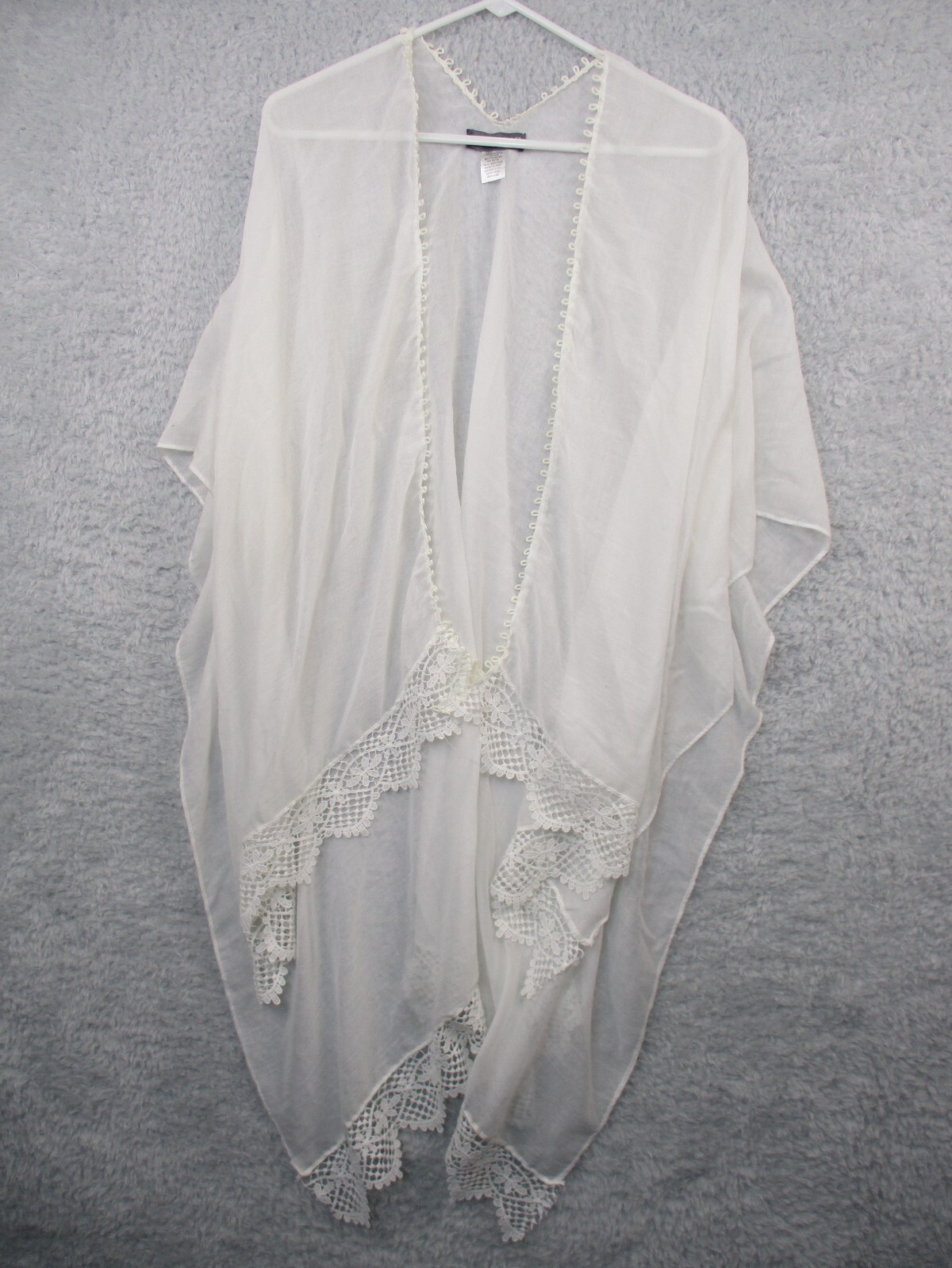 Accessory Street Women s Sheer Kimono Cardigan One Size White Boho Lace Trim Cov