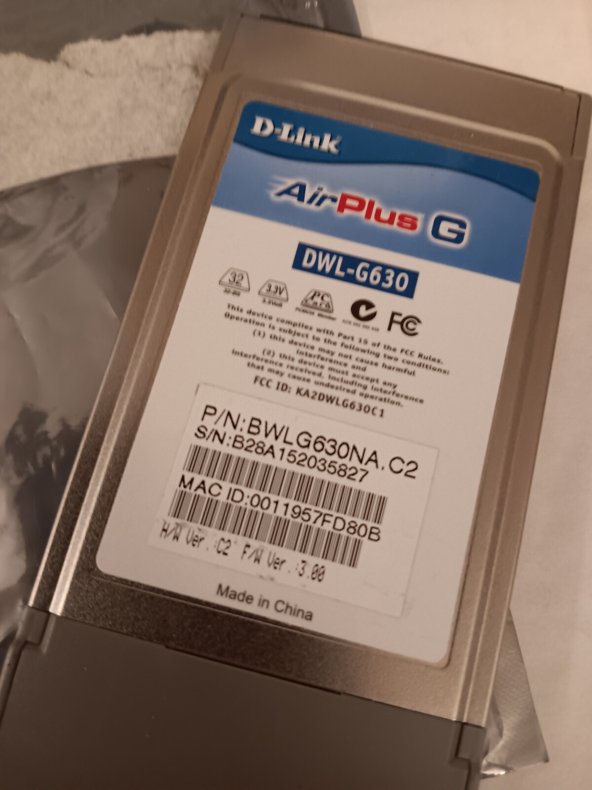 как выглядит D-Link DWL-G630 802.11g / 2.4 GHz Wireless Cardbus Adapter PCMCIA Card фото