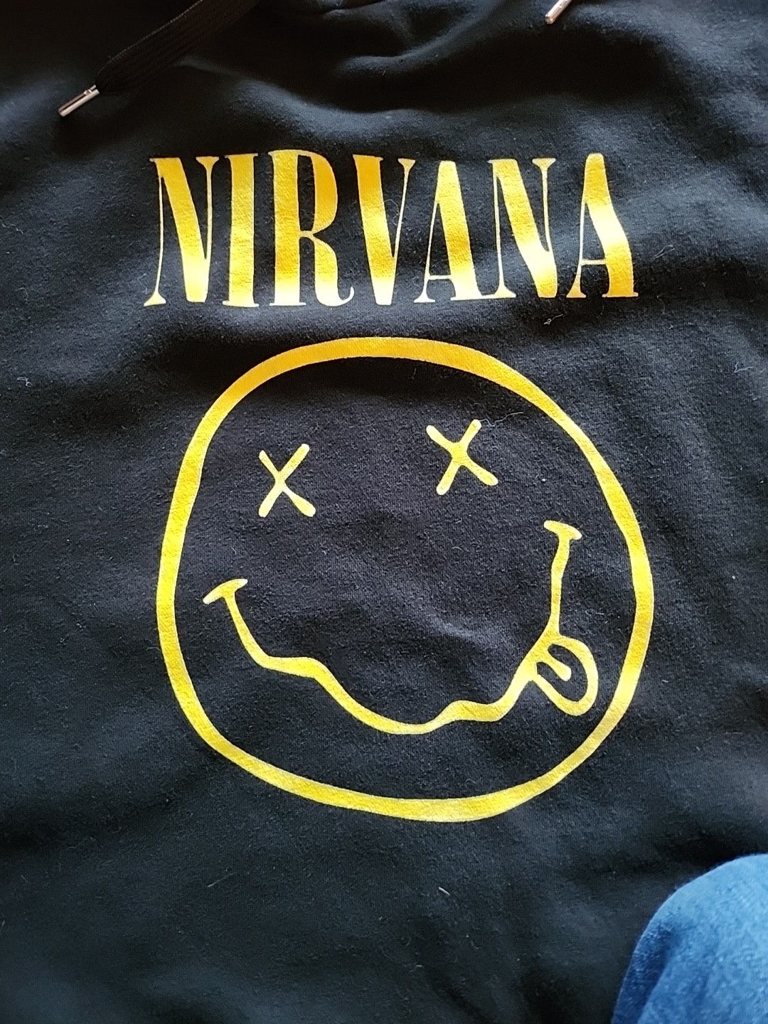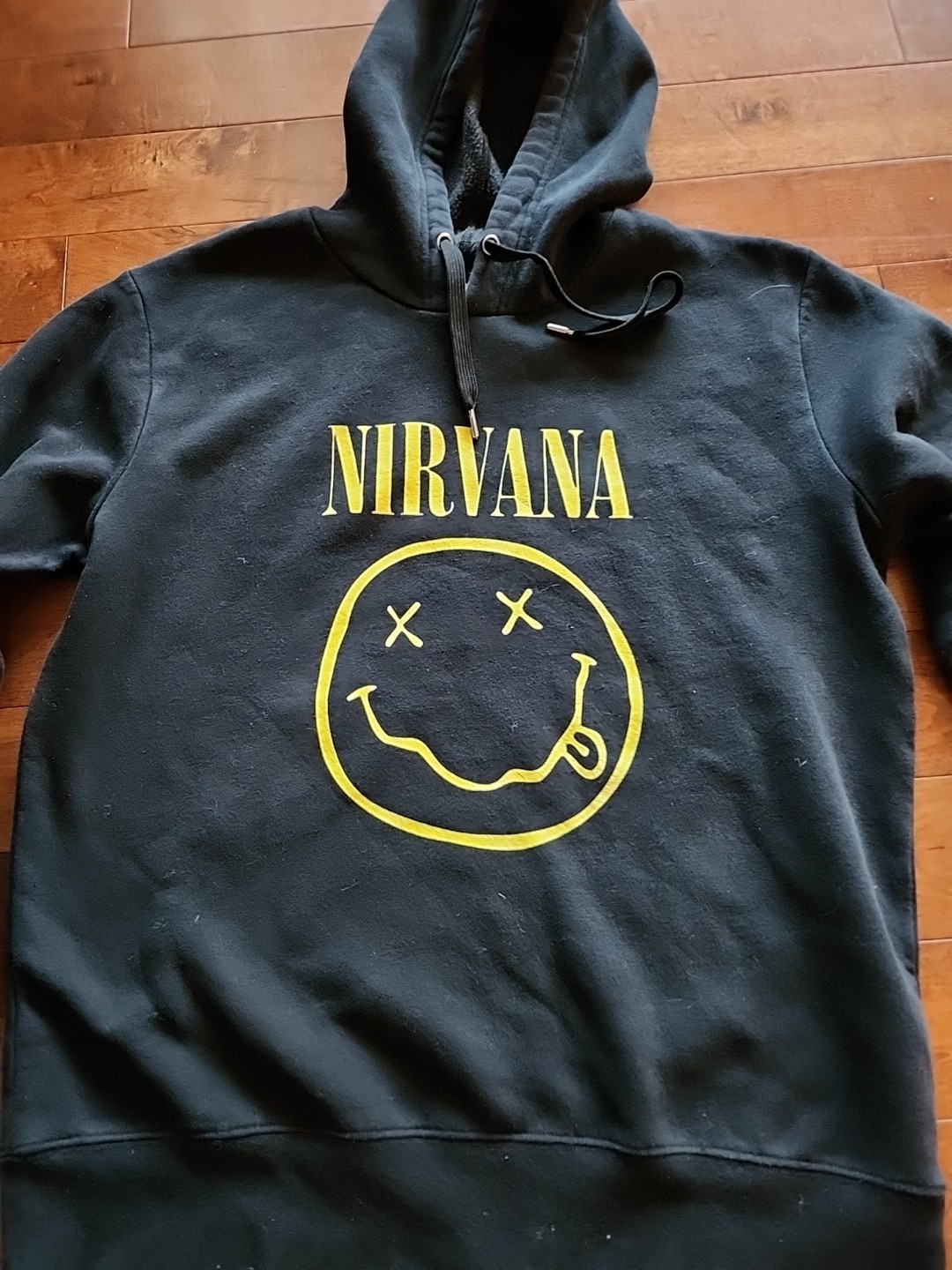 как выглядит Nirvana Smiley Face Mens Medium Black Hoodie Sweatshirt фото