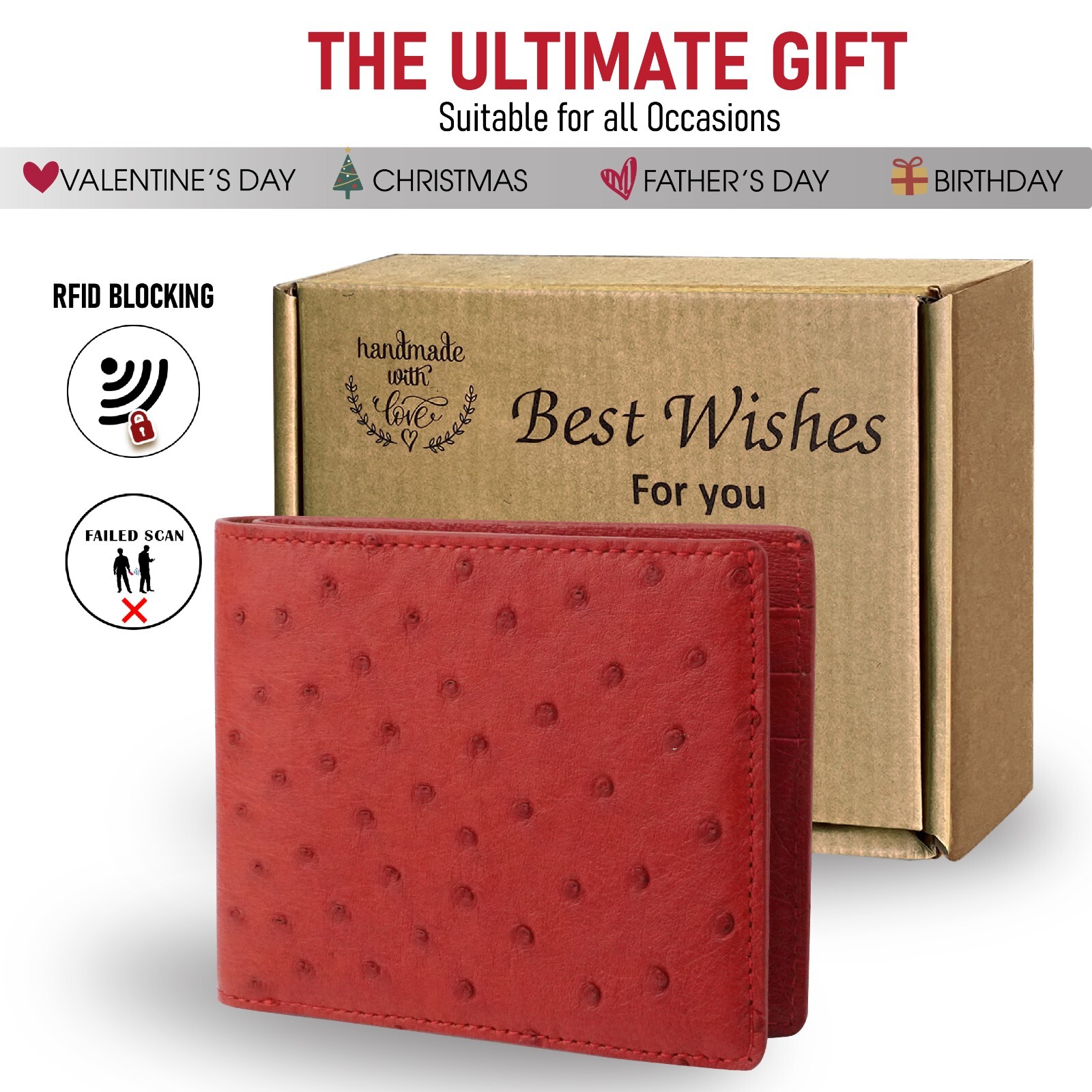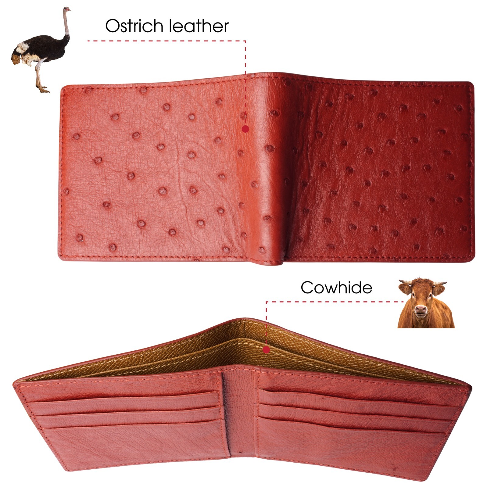 как выглядит Genuine Ostrich Red Bifold Leather Wallet Mens Skin Wallet Handmade Gift фото