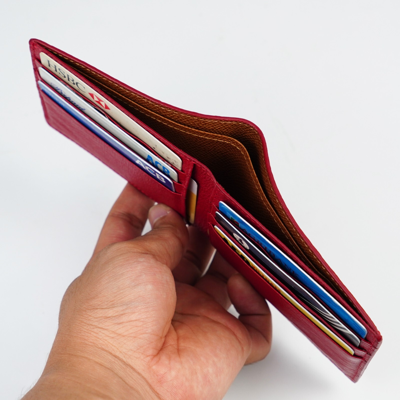 Genuine Ostrich Red Bifold Leather Wallet Men's Skin Wallet Handmade Gift