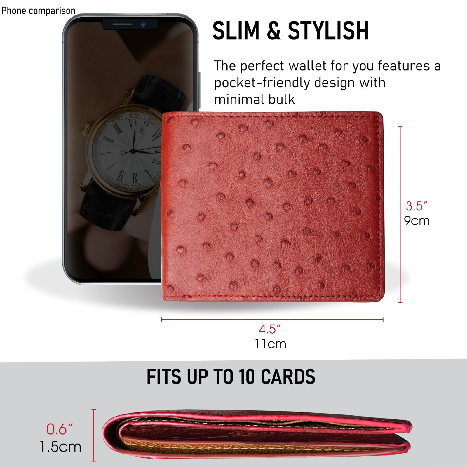 как выглядит Genuine Ostrich Red Bifold Leather Wallet Men