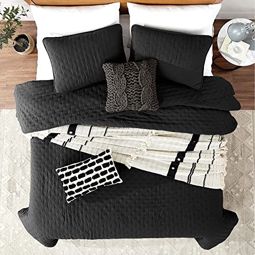 Black Twin Size Quilt Bedding Sets with Pillow Sham, Lightweight Soft