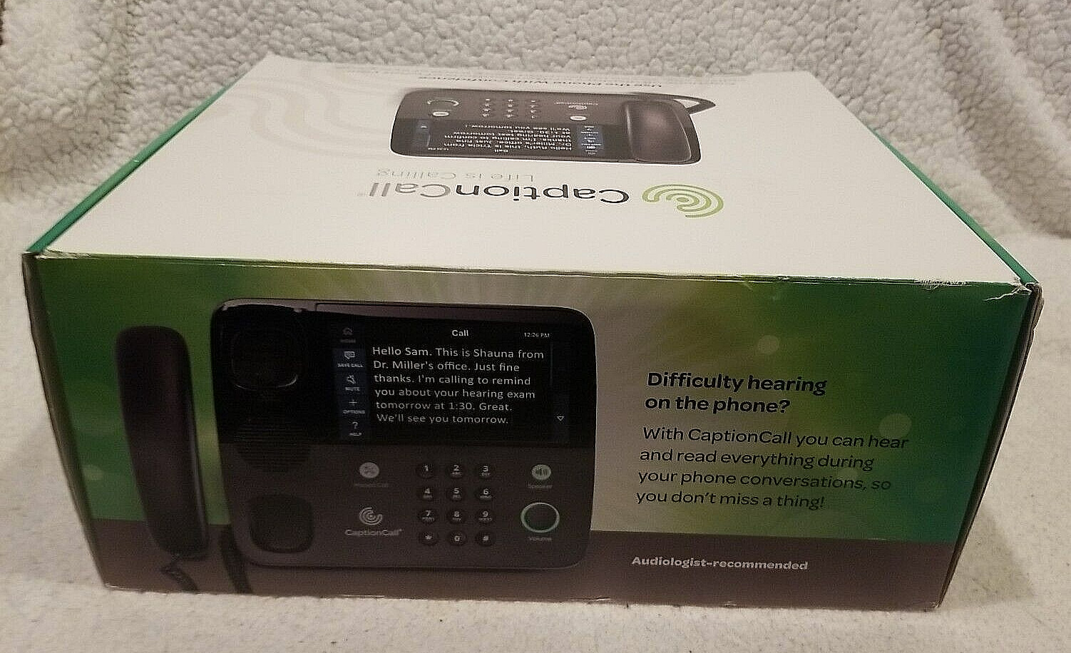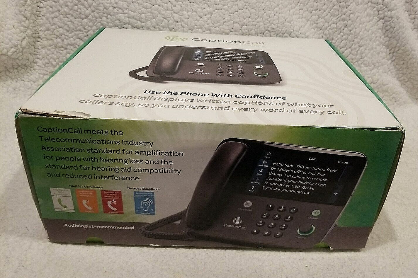 Особенности: Speakerphone, Fast & Accurate Captions, Caption Call Real Sound Speakerphone, Large, high-resolution touchscreen, CaptionCall SilkScroll: Smooth-scrolling Captions, Customizable frequency amplification, Hearing Aid Compatible, Ability to Save Conversations For Future Review