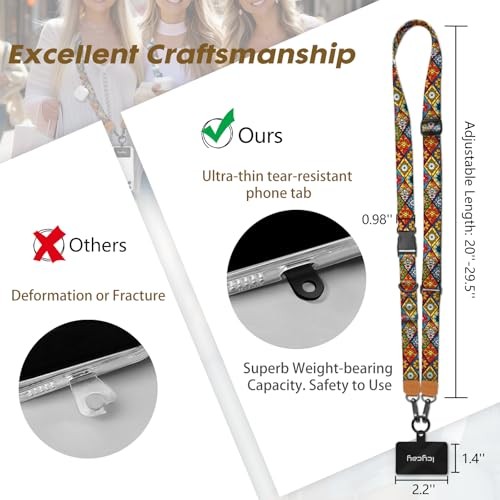 Phone Lanyard Crossbody, Boho Cell Phone Lanyard for Around The Boho Colorful