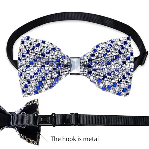 Rhinestone Bow Ties for Men Adjustable Sequin Diamond Pre-tied Royal Blue