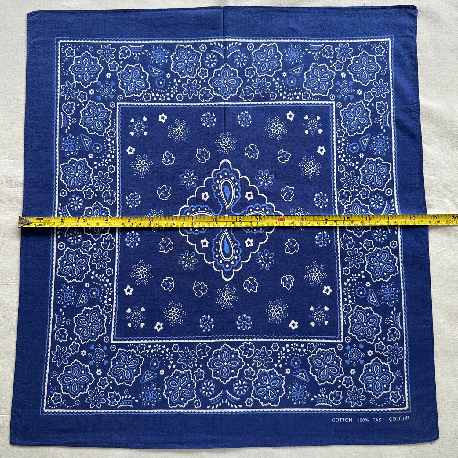 Vintage Men Bandana Blue Cotton Floral Geometric White Handkerchief Kerchief 19