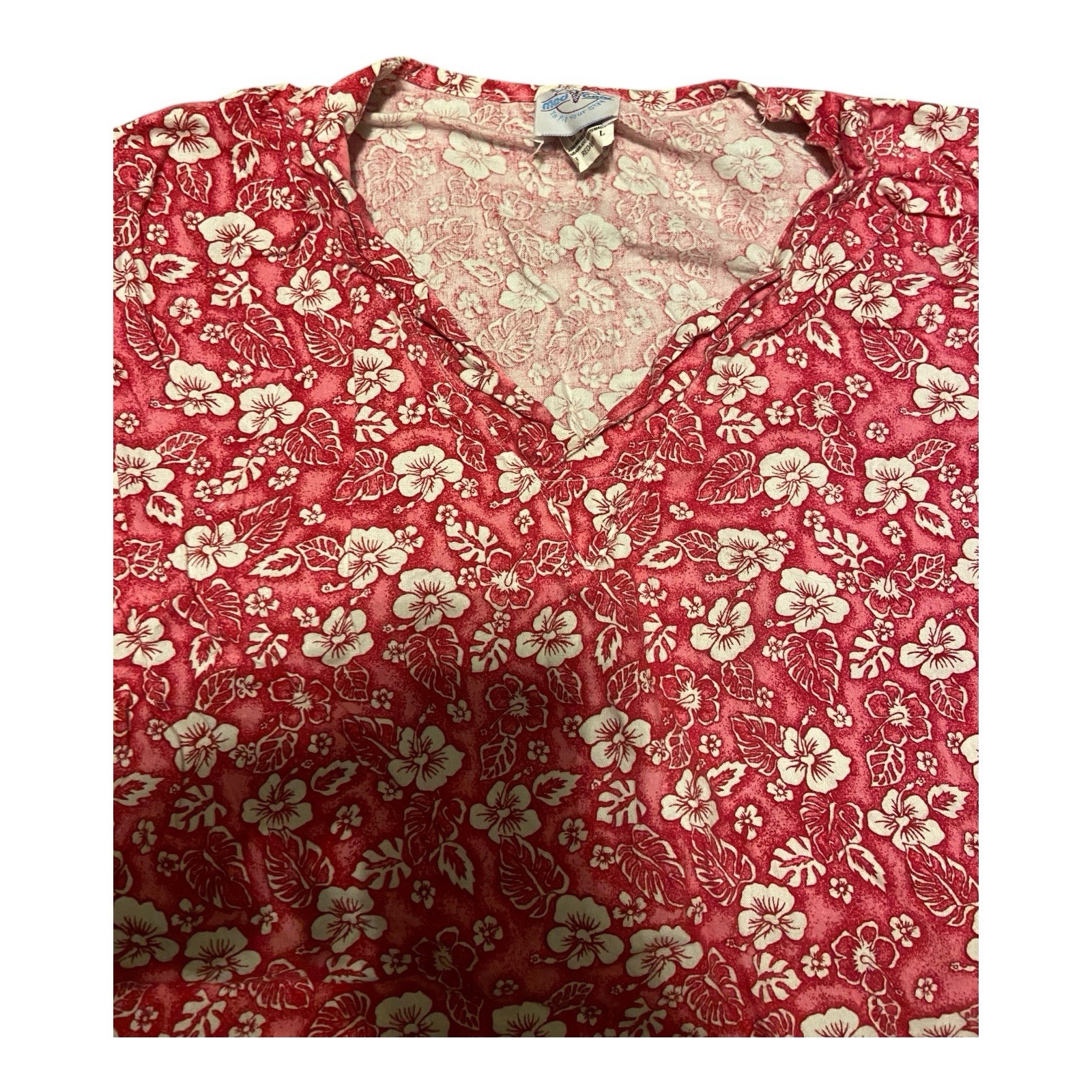 Med Gear Scrub Top - Pink White Floral Print - Size Large W/ 2 Pockets