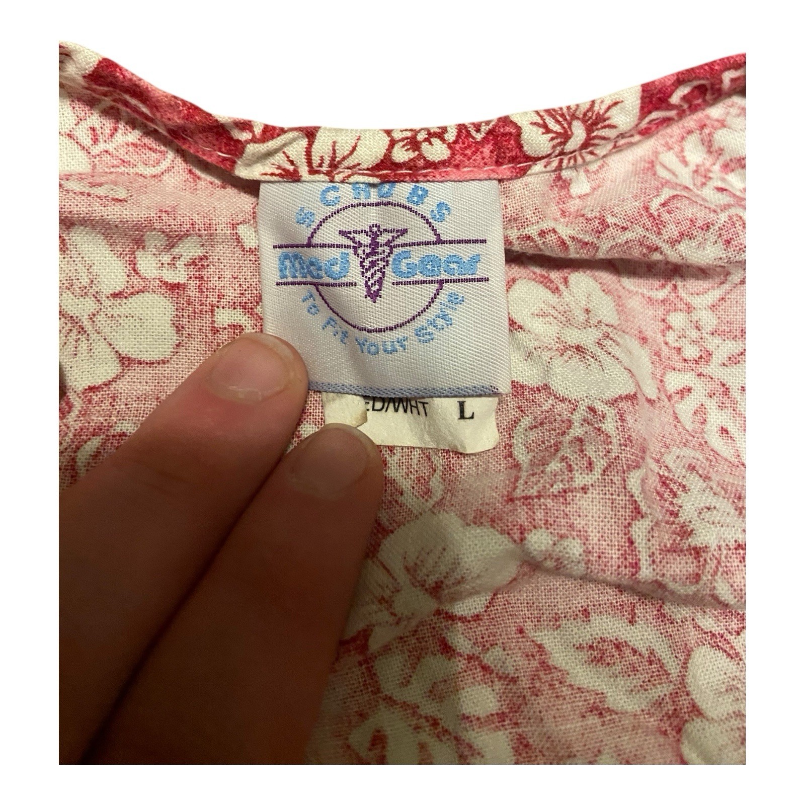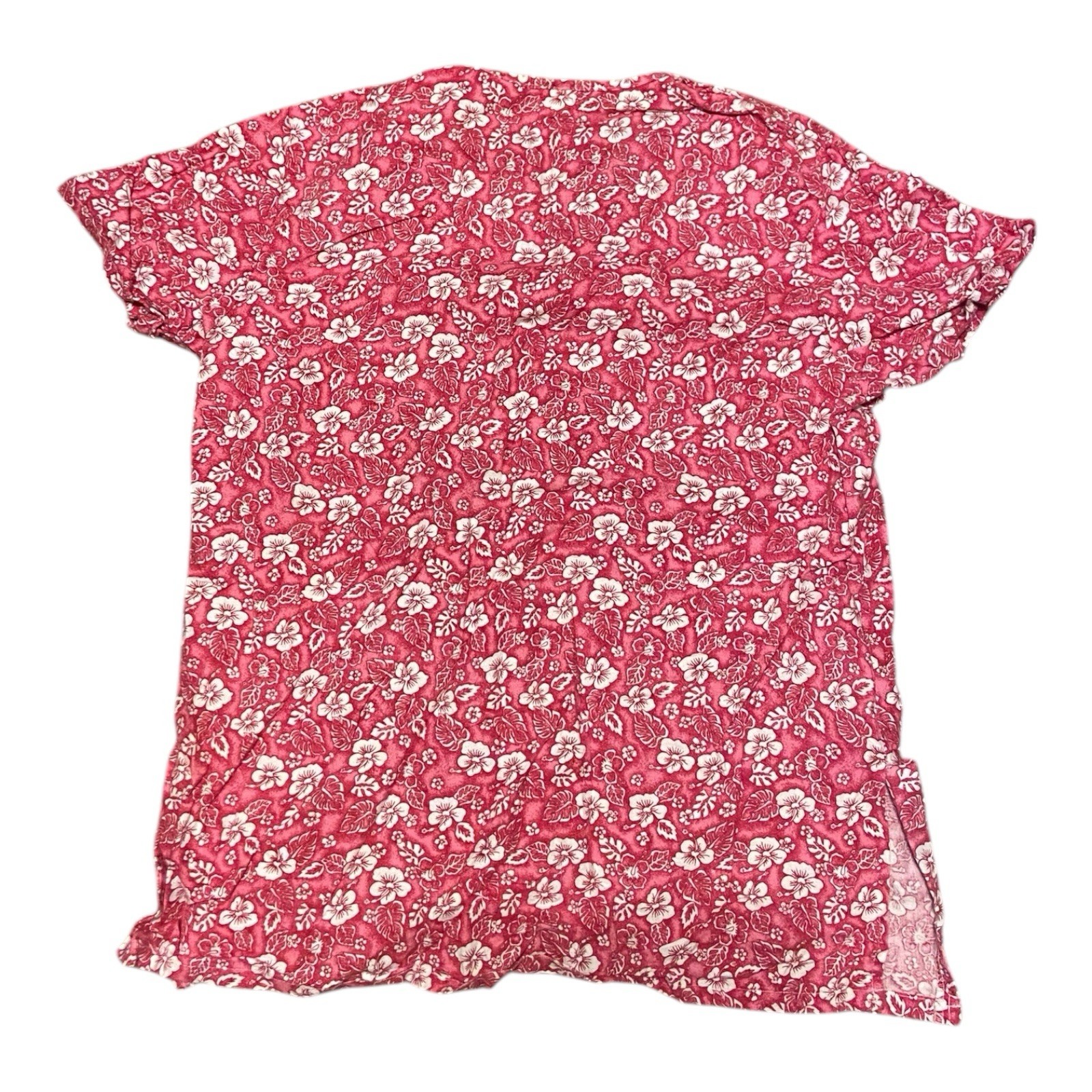 как выглядит Med Gear Scrub Top - Pink White Floral Print - Size Large W/ 2 Pockets фото