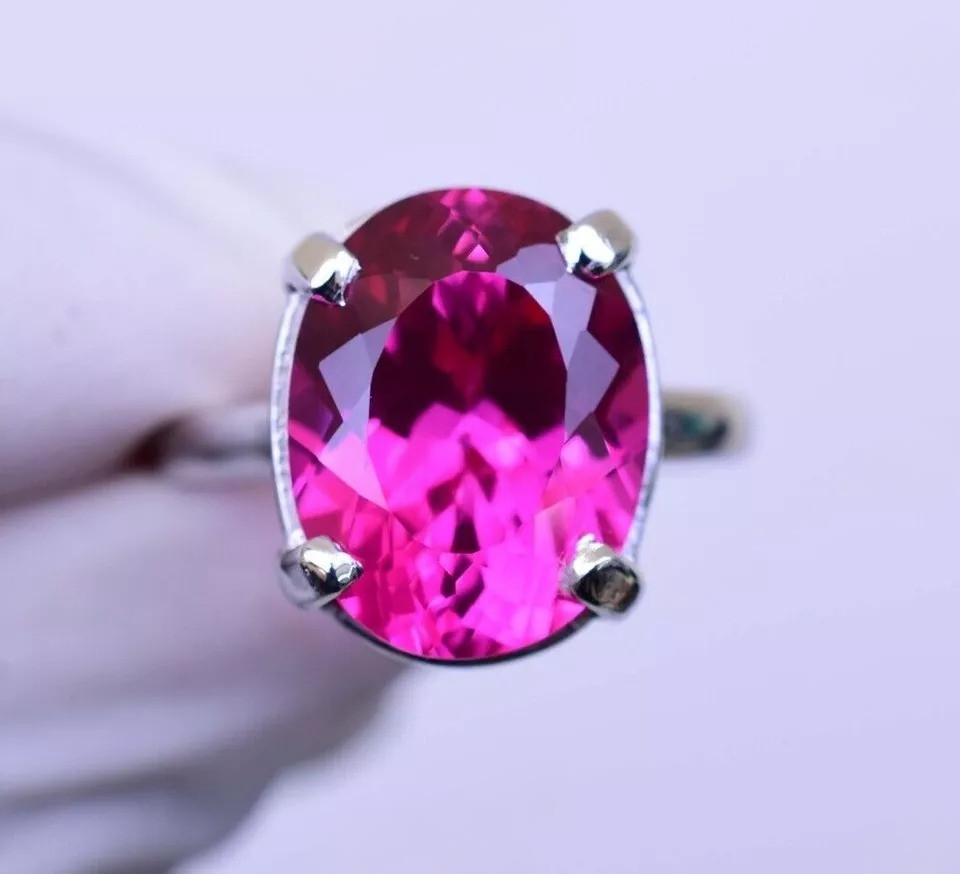 как выглядит 925 Sterling Silver Ring Natural Rose Pink Ruby Oval Wedding Ring Certified фото