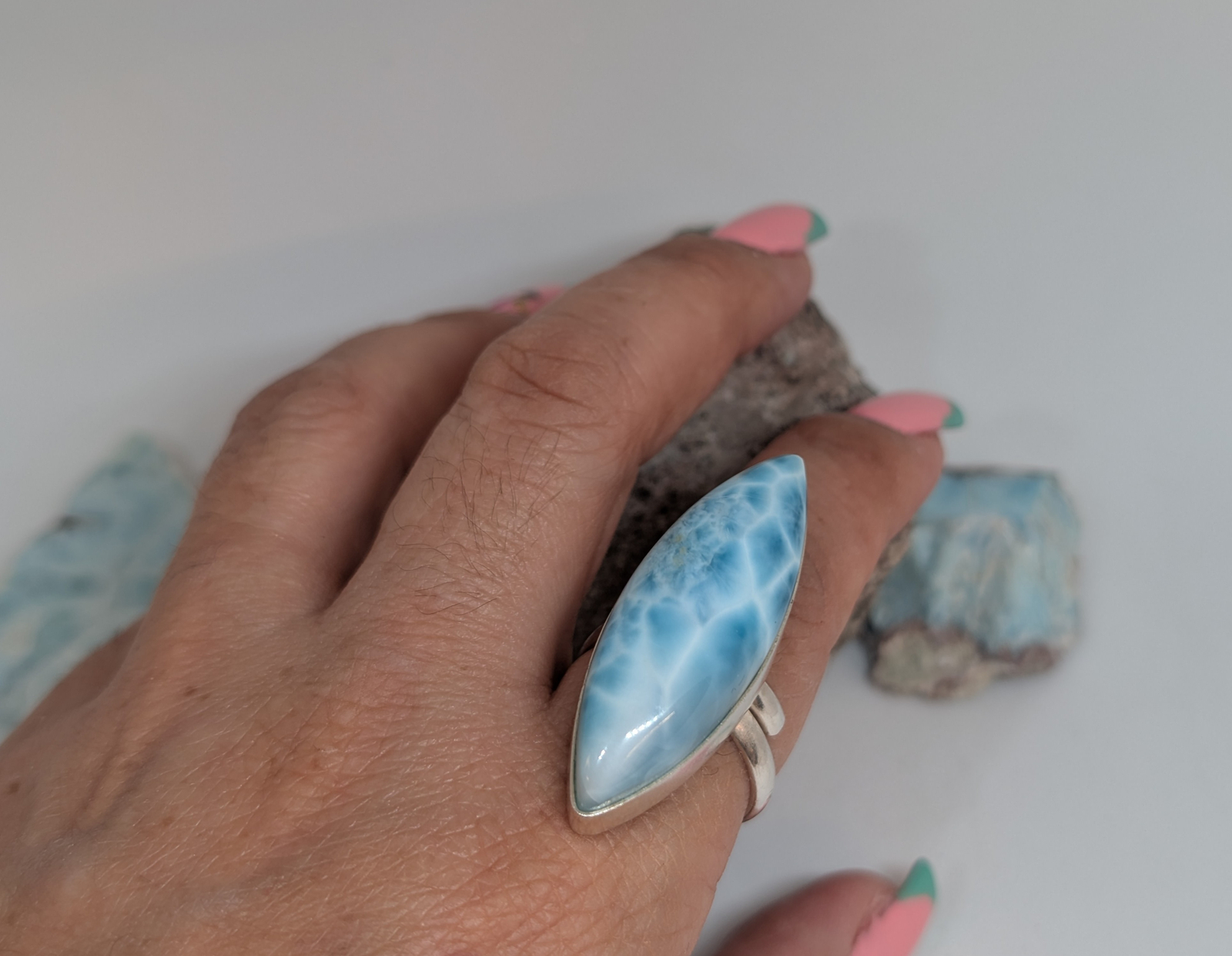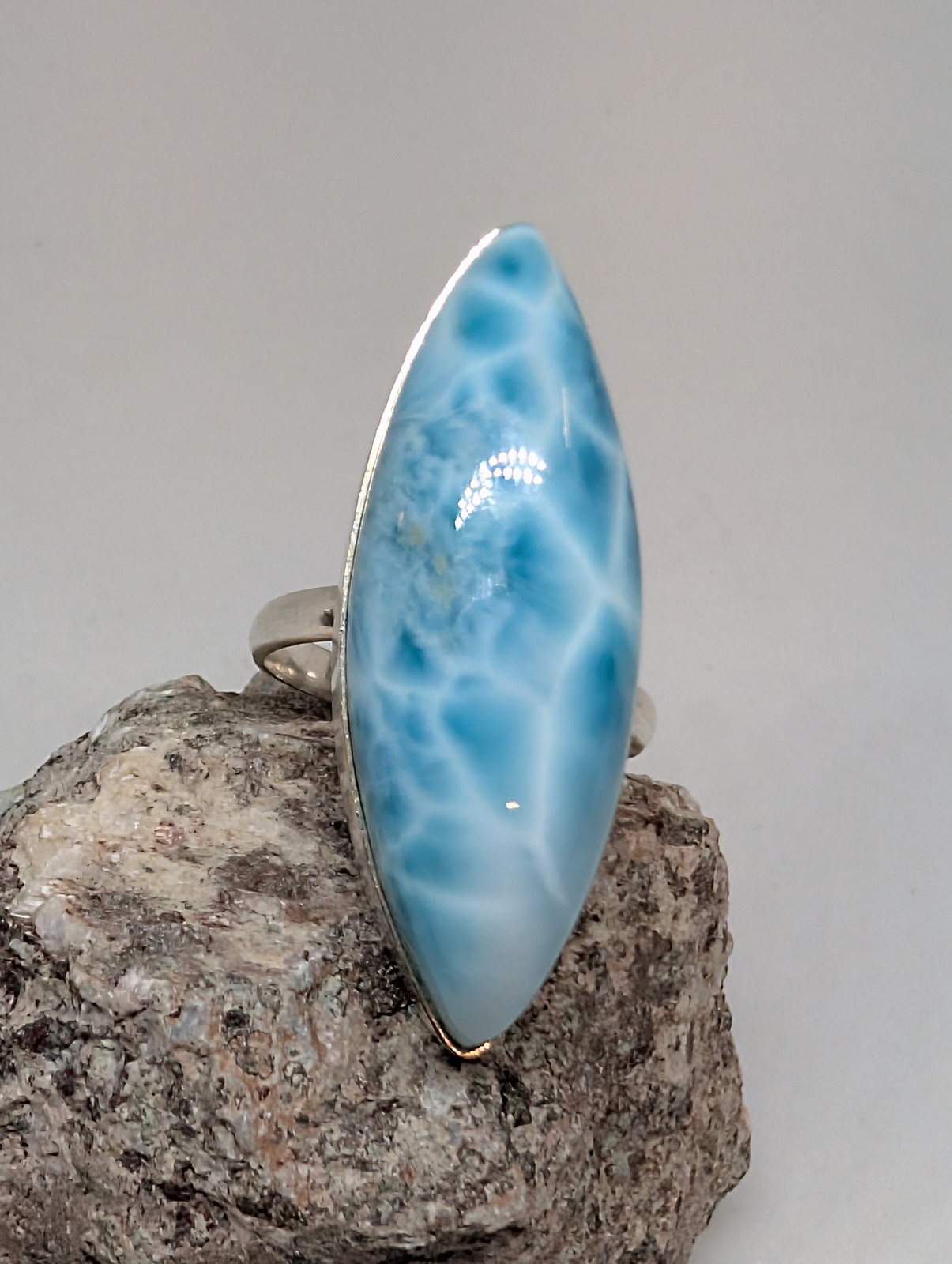 как выглядит 015 Size Adjustable High Quality Marquise Larimar Pectolite Ring фото