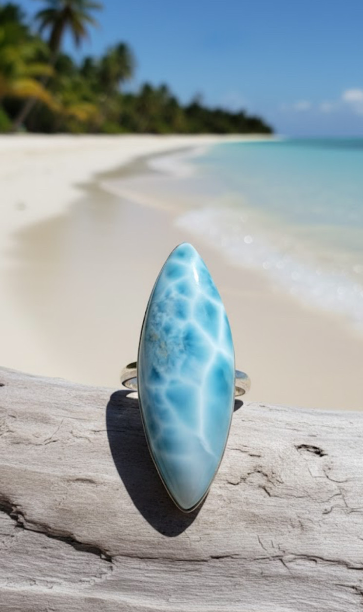 015 Size Adjustable High Quality Marquise Larimar Pectolite Ring