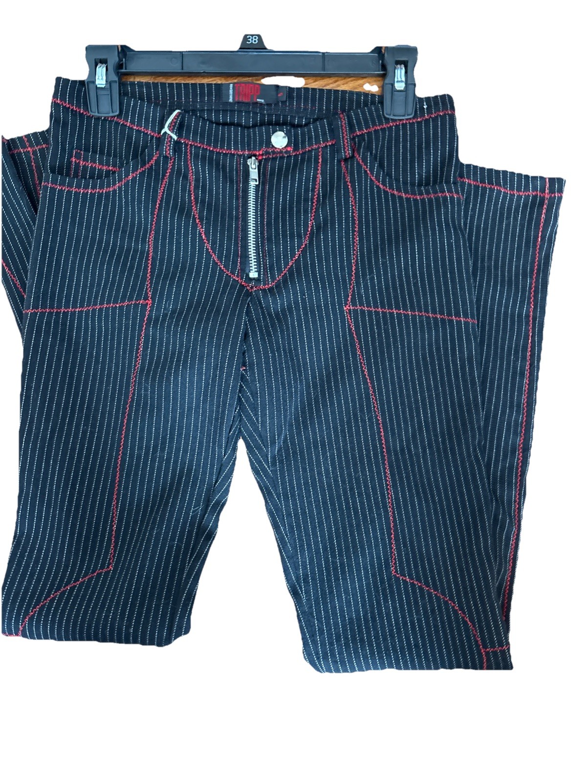 как выглядит Tripp Vtg Black W Strip Red N White Detail Pants Sz 5 Hot Topic Y2K фото