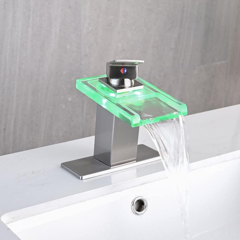 Grifo para lavabo de ba o LED, cascada de n quel cepillado con un solo orificio