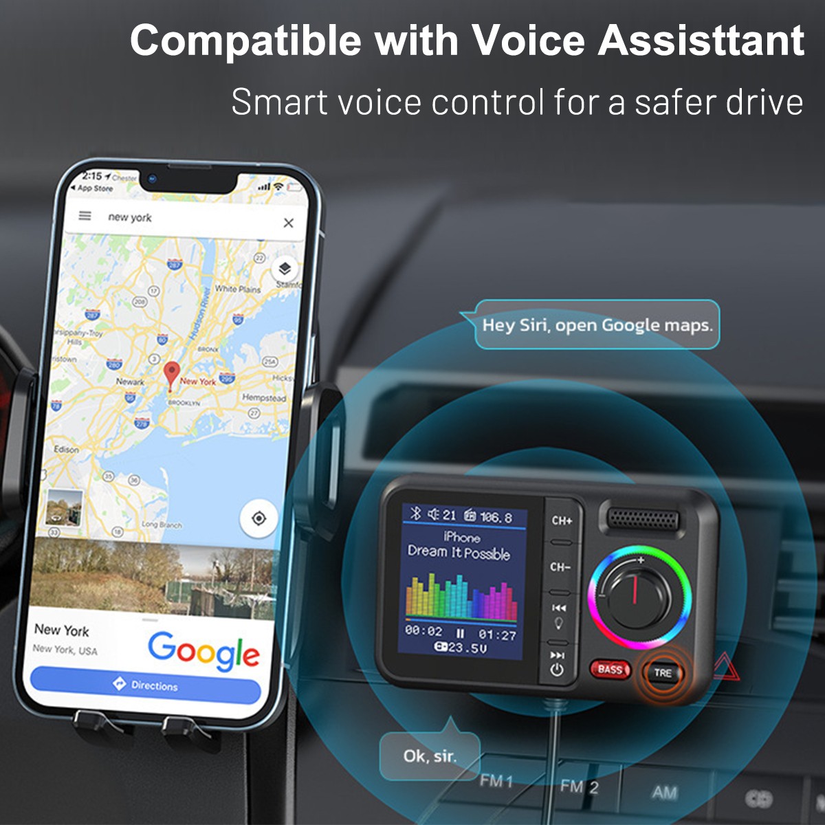 как выглядит New Bluetooth 5.0 Car FM Transmitter w/ QC3.0 Fast Charging 1.8" Color Screen фото