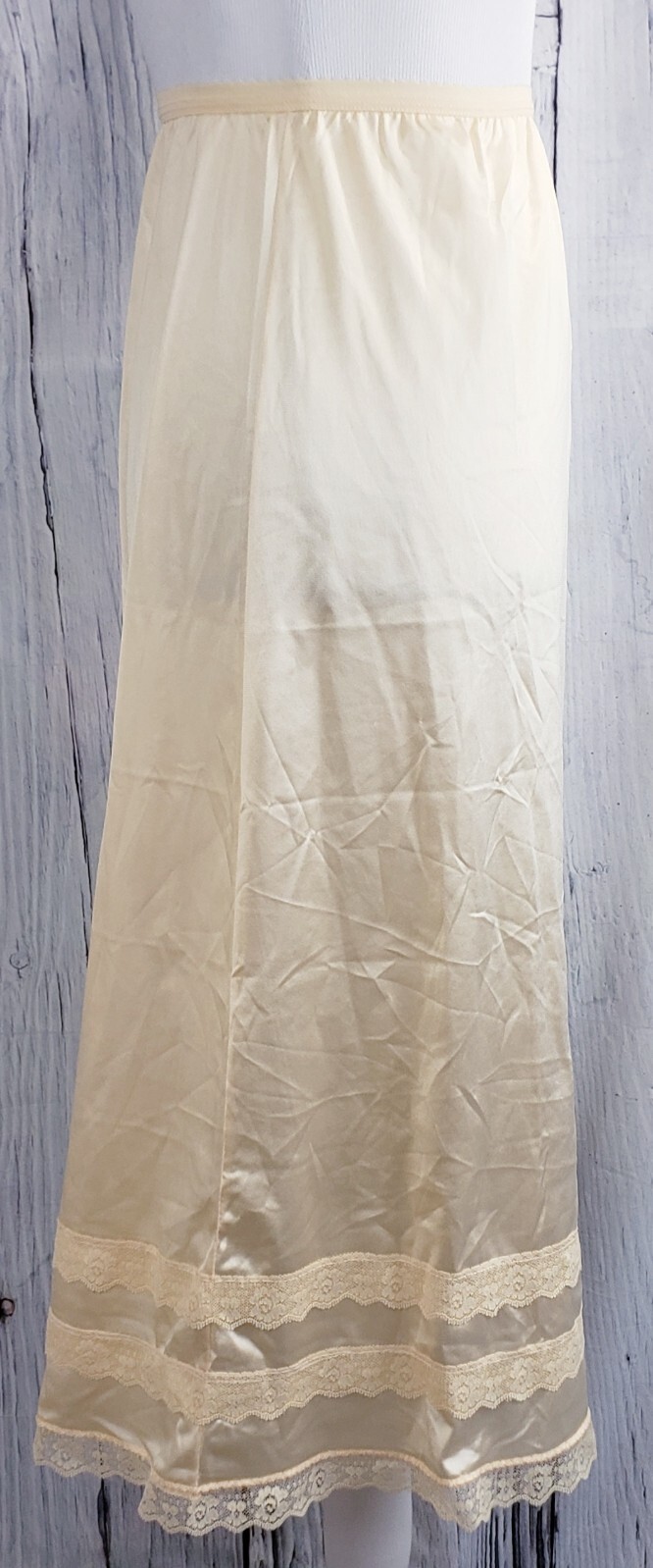как выглядит VTG Nancy King Lingerie Skirt Half Slip Retro Nylon 4182 Beige Small 30" фото