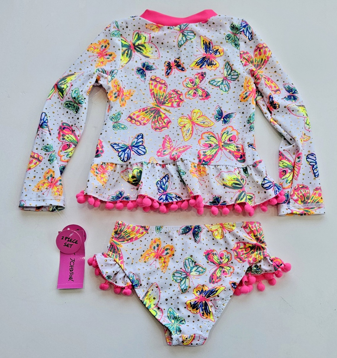 Betsey Johnson Girl's 4T L/S 2 Pc Rash Guard Tankini Swimsuit Butterfly White