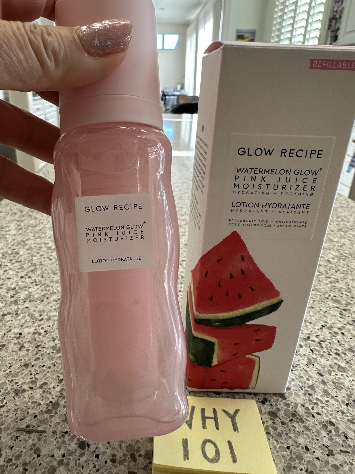 Ingredients: Watermelon, Licorice, Aloe Vera, Water, Hyaluronic Acid, Antioxidants