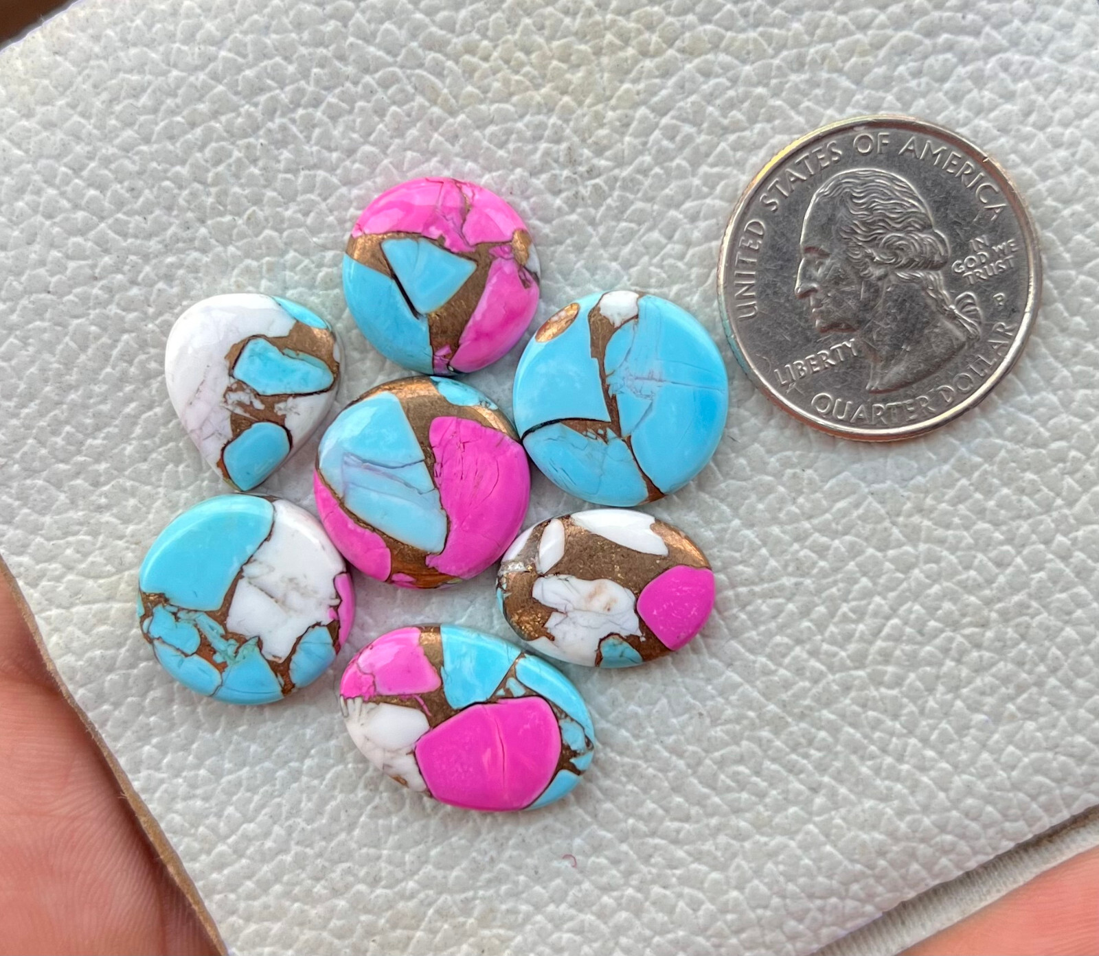 7 Piece Natural Cotton Candy Kingman Turquoise Mix Cabochon Gemstone 57 Ct F0 19