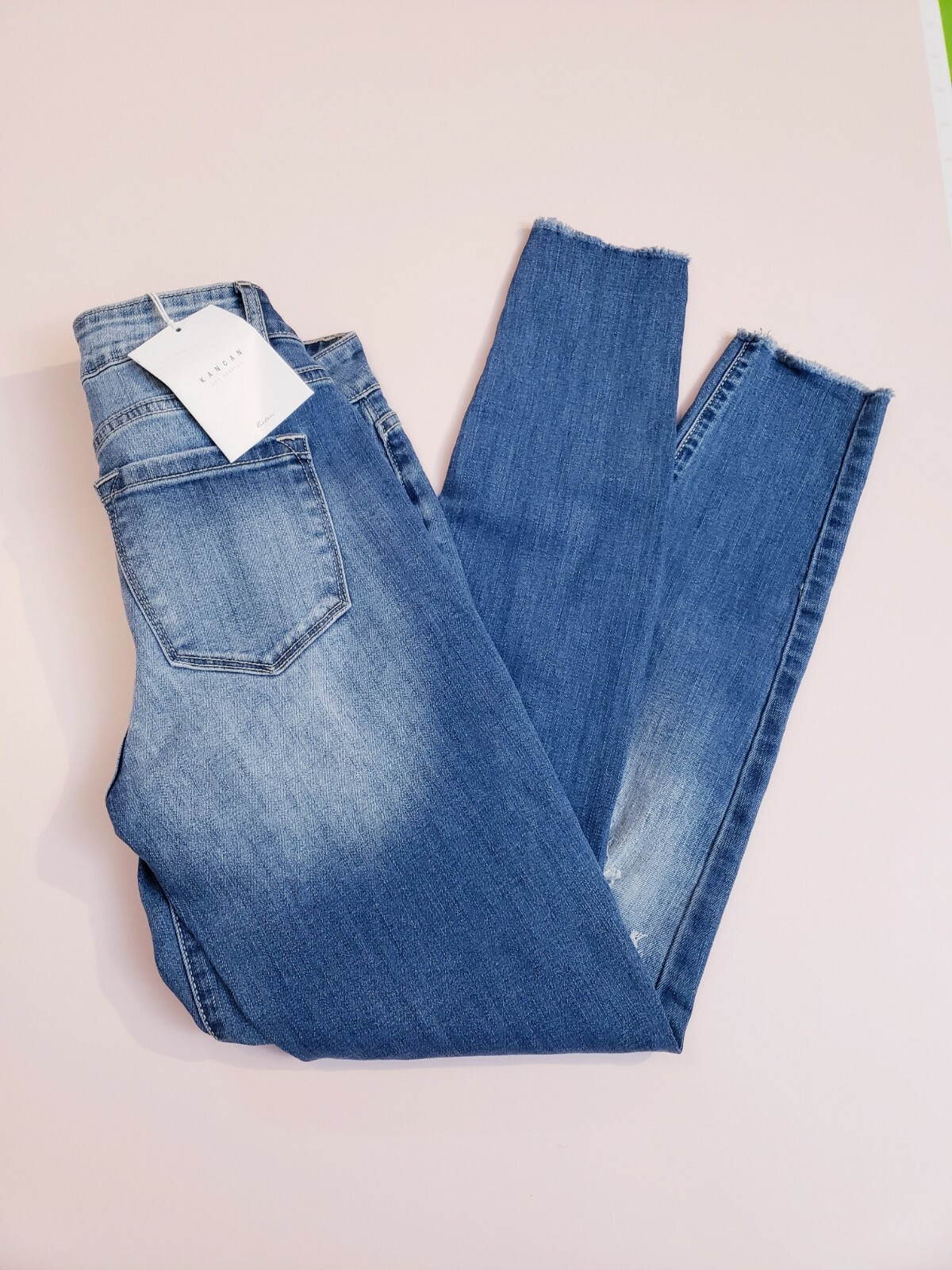 KanCan Mid Rise Ankle Skinny Jeans Distressed Raw Hem Denim Leggings 5/26 NWT