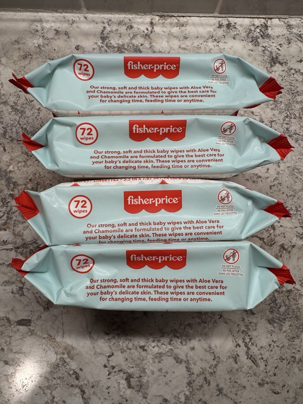 4 pks Fisher-Price Baby Wipes Fragrance-Free Aloe Chamomile 72ct Fast Shipping