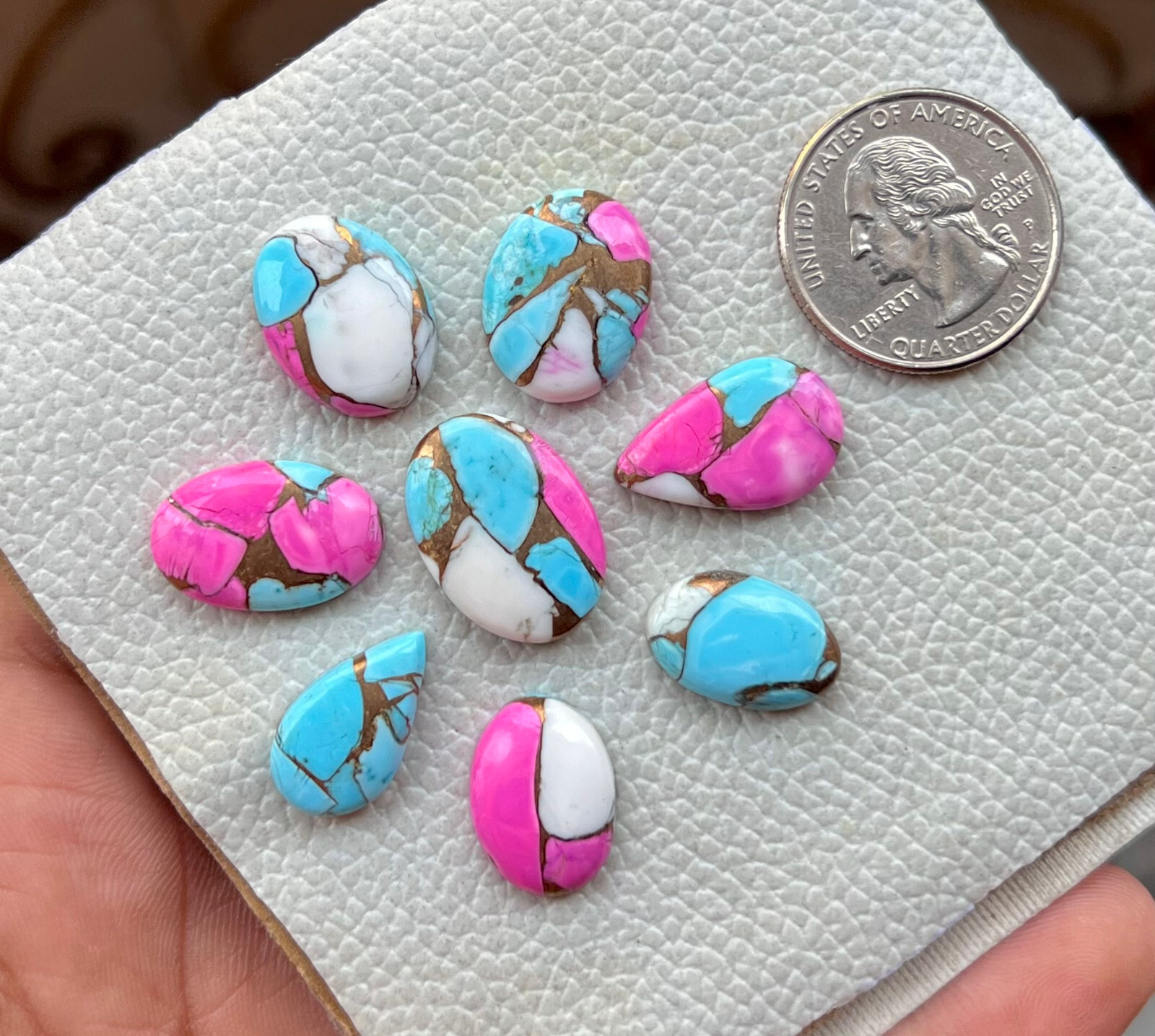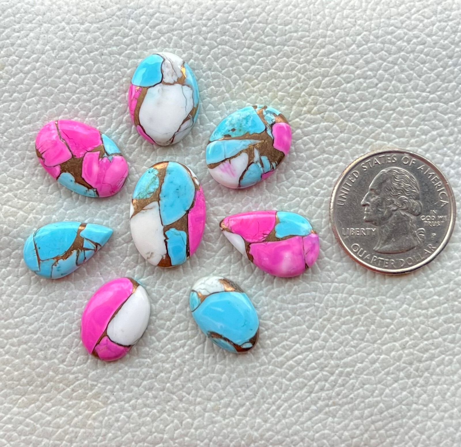 8 Piece Natural Cotton Candy Kingman Turquoise Mix Cabochon Gemstone 62 Ct F0 06