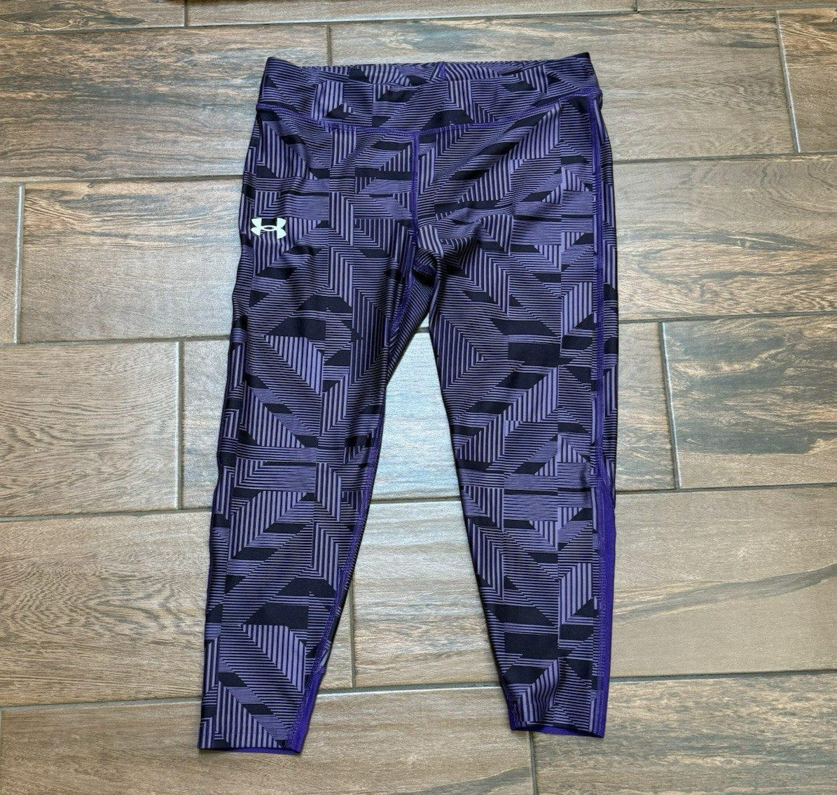 Under Armour Leggings Girls YL Purple Geometric Compression UA Crop