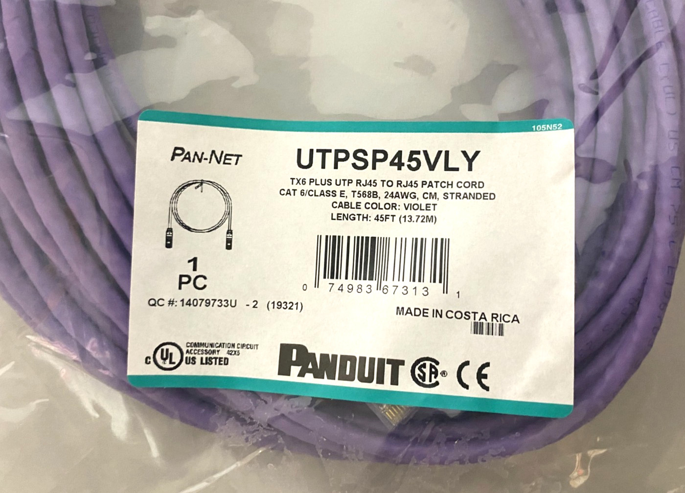 Panduit UTPSP45VLY Cord 45 FT LOT OF 2