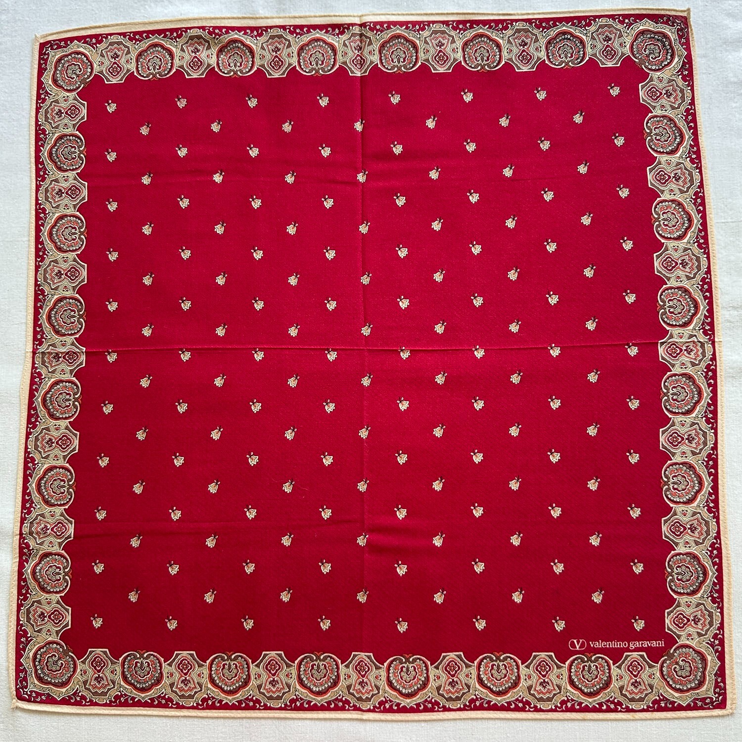 Handkerchief VTG Dark Red Cotton Floral Border Damask Classic Pocket Square 18