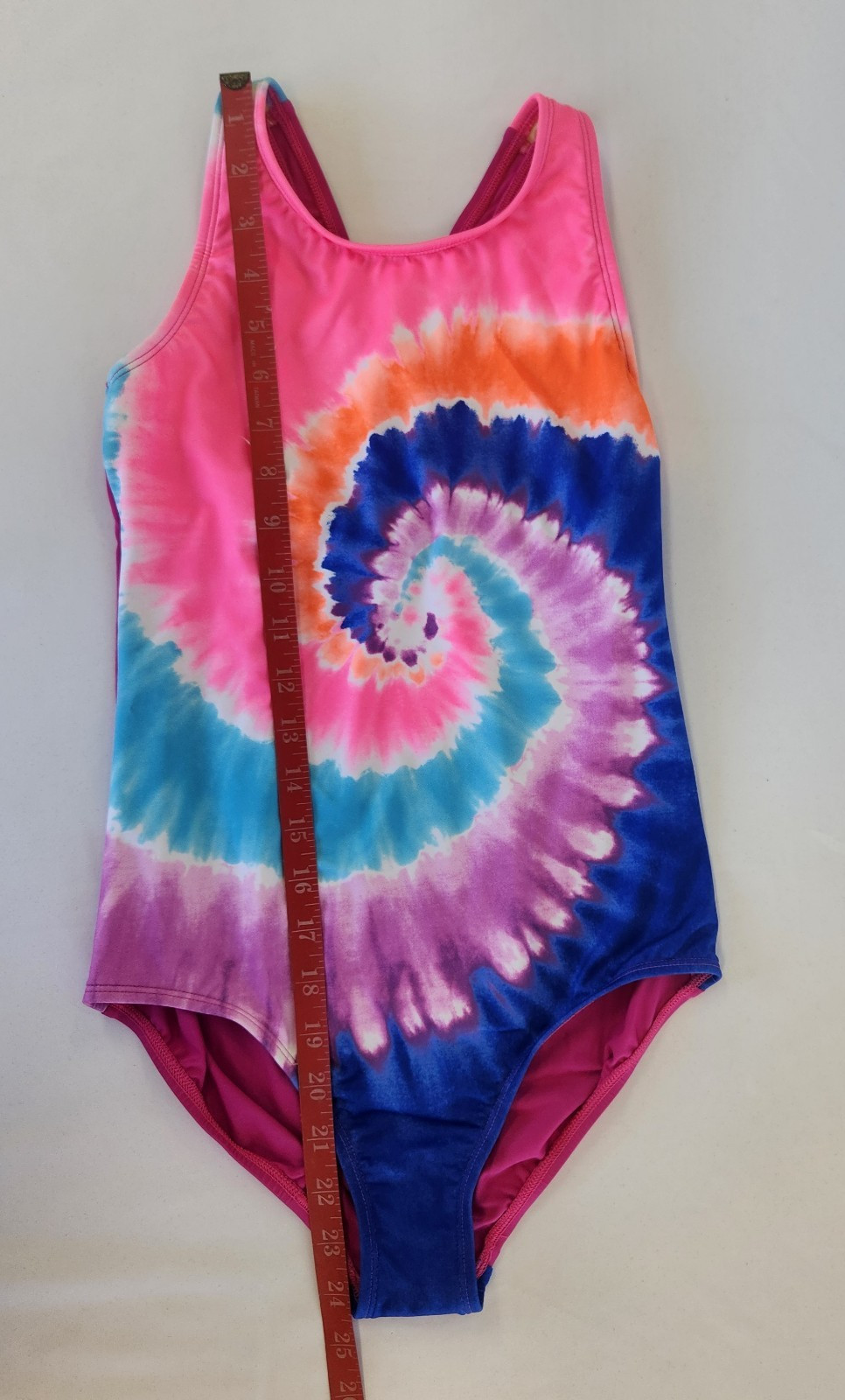 как выглядит Girls Lands End Racerback One Piece Swimsuit, Electric Blue Tie Dye Sz 10,12,14 фото